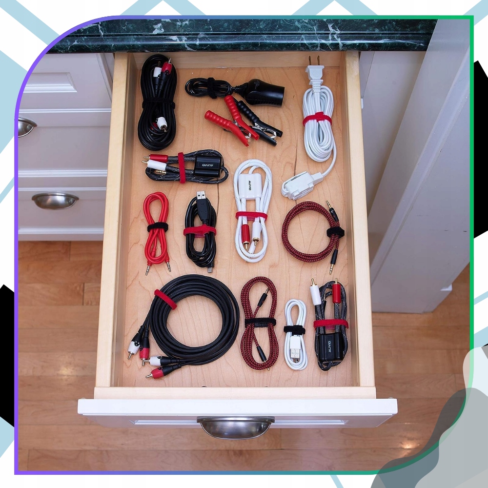✅ Набір доступний у практичному поєднанні кольорів, що дозволяє легко маркувати кабелі відповідно до їх призначення. Наприклад, ви можете відокремити комп'ютерні кабелі, дроти від мережевих кабелів, зарядні пристрої та аудіоапаратуру. Таке групування кольорів полегшує подальшу ідентифікацію та водночас робить робочу станцію естетичною та професійною. Пов'язки розміром 12 × 150 мм ідеально підходять для повсякденного використання - як за робочим столом, у серверній, так і в подорожі.