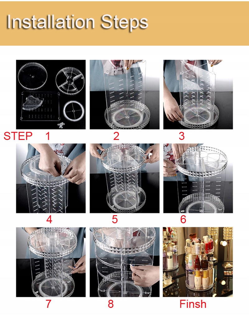 Обертається на 360 для легкого доступу до косметики. Він має сім рівнів, які ми можемо вільно переставляти залежно від наших потреб. Органайзер допоможе вам заощадити простір і впорядкувати косметичні аксесуари. Легко чиститься, ідеально підходить як подарунок.