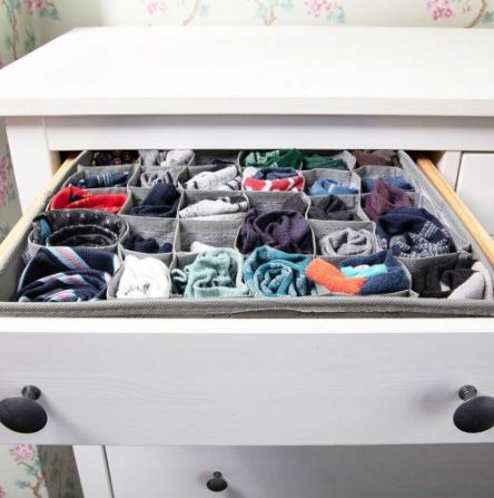 Переносний контейнер дозволить вам упорядкувати нижню білизну, шкарпетки та бюстгальтери, випадково розміщені в ящиках, у простий і практичний спосіб.