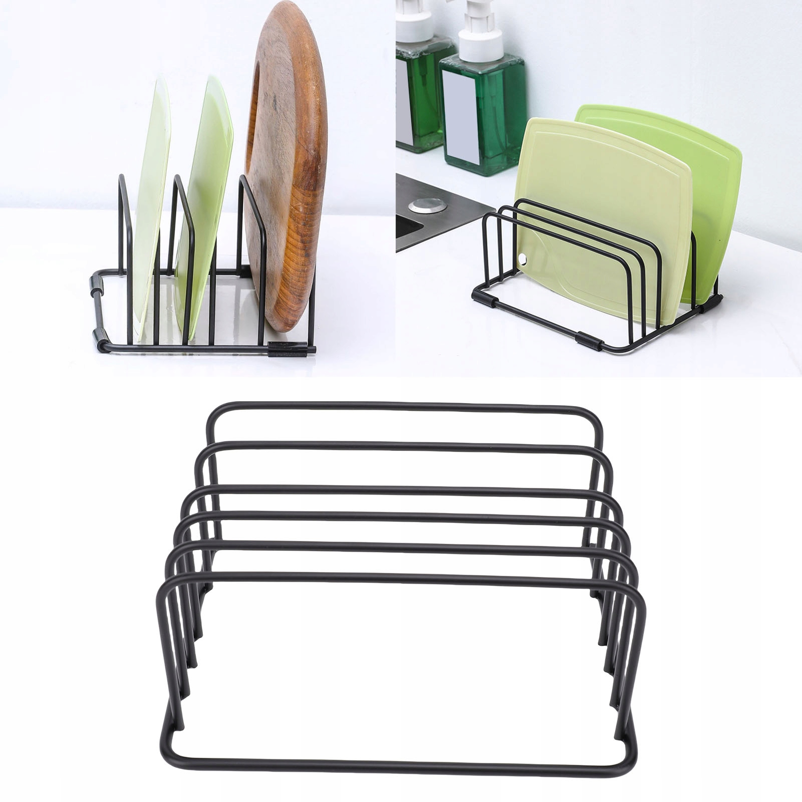 1. МИРНИЙ ТА БАГАТОФУНКЦІОНАЛЬНИЙ: Органайзер для обробної дошки має багатофункціональний дизайн, він може містити обробну дошку, кришку каструлі, ножі та інше кухонне начиння, заощаджуючи простір, зберігаючи акуратність і порядок