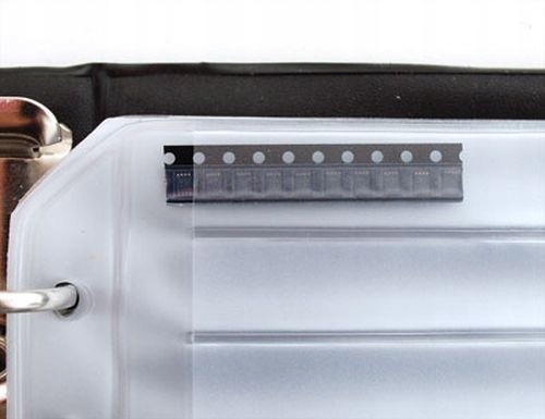 Органайзер для SMD-елементів, містить 20 сторінок, 19 сторінок для елементів у стрічках 8 мм (по 12 на сторінці ), 1 сторінка для елементів у стрічках 24 мм (6 на сторінці). Довжина кишень приблизно 9 см. Матеріал, з якого виготовлені сторінки, дозволяє підписувати елементи маркером. Розмір 19 х 14 х 3,5 см.