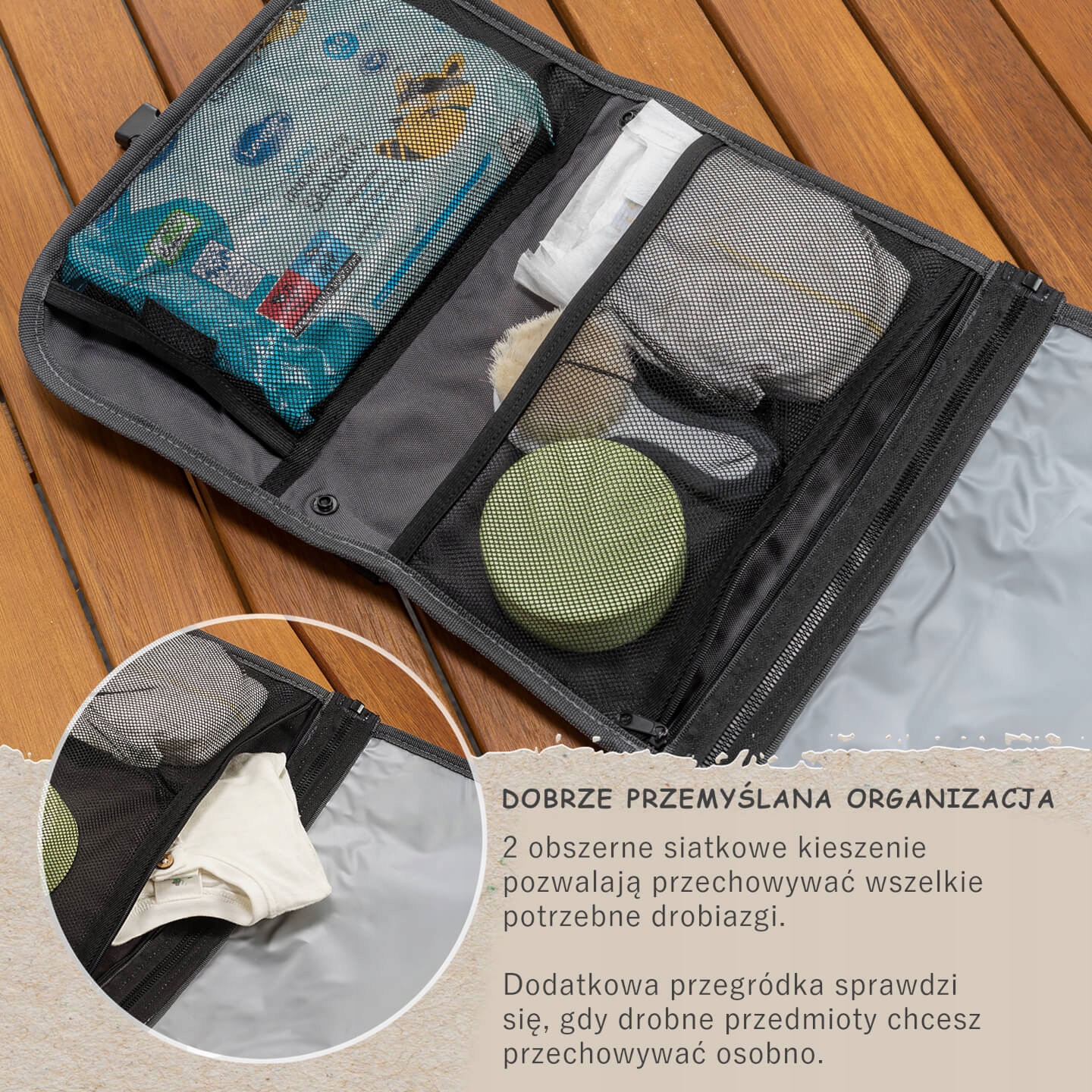 Найважливіші характеристики та переваги: Дві сітчасті кишені Просторий килимок (у розкладеному стані: 30 см x 104 см) робить легше міняти підгузник дитині «на бігу» Килимок товщі в зоні, призначеній для голови дитини, що забезпечує більший комфорт