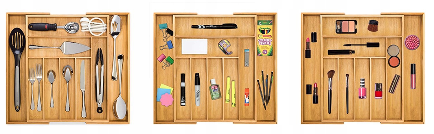 ДЕРЕВ'ЯНИЙ (БАМБУКОВИЙ) РЕГУЛЬОВАНИЙ Органайзер для столових приборів із вставкою в шухляду