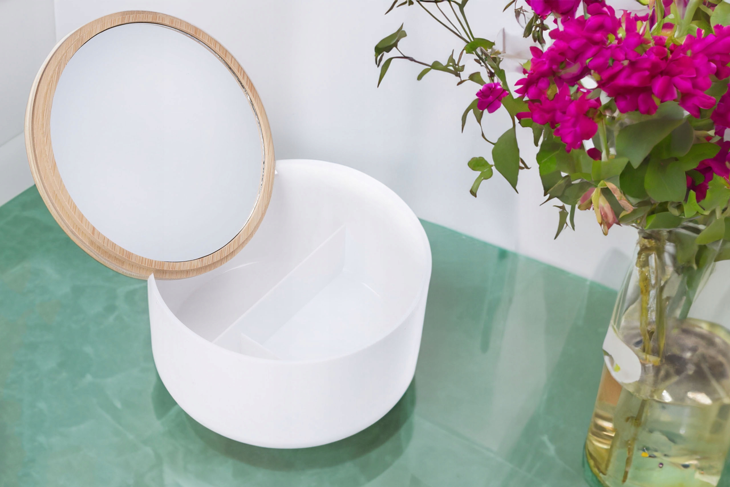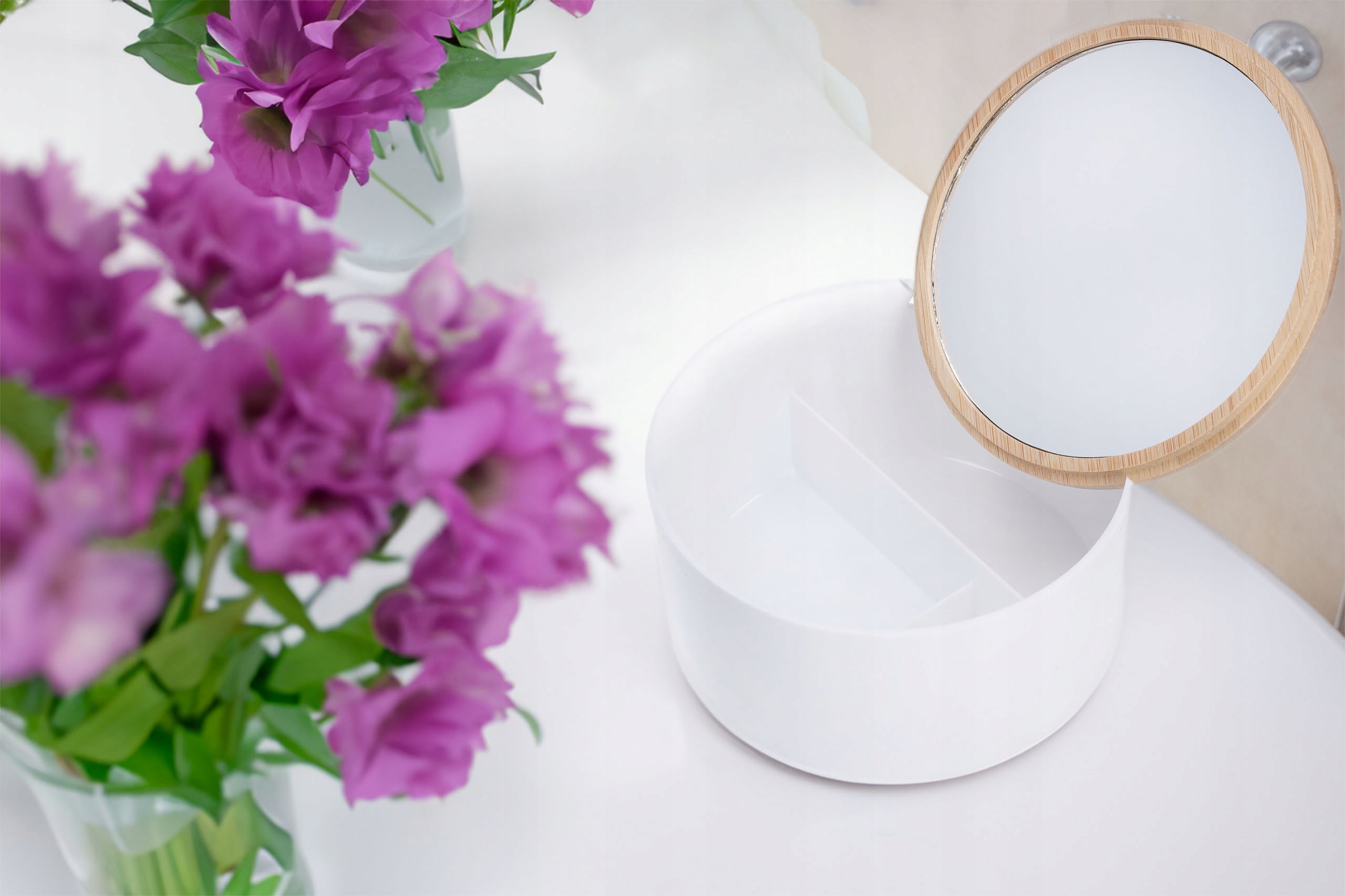 ✅ Універсальність - ідеальний продукт для жінок, яким потрібне практичне та функціональне рішення водночас. Це дзеркало, яке можна транспортувати куди завгодно, не боячись пошкодити, і в той же час має органайзер для зберігання косметики.