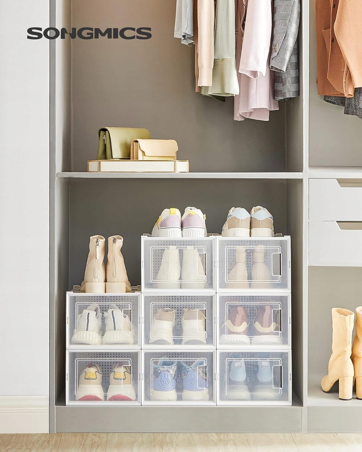Набір із 8 прозорих органайзерів для взуття | Модульні коробки Songmics