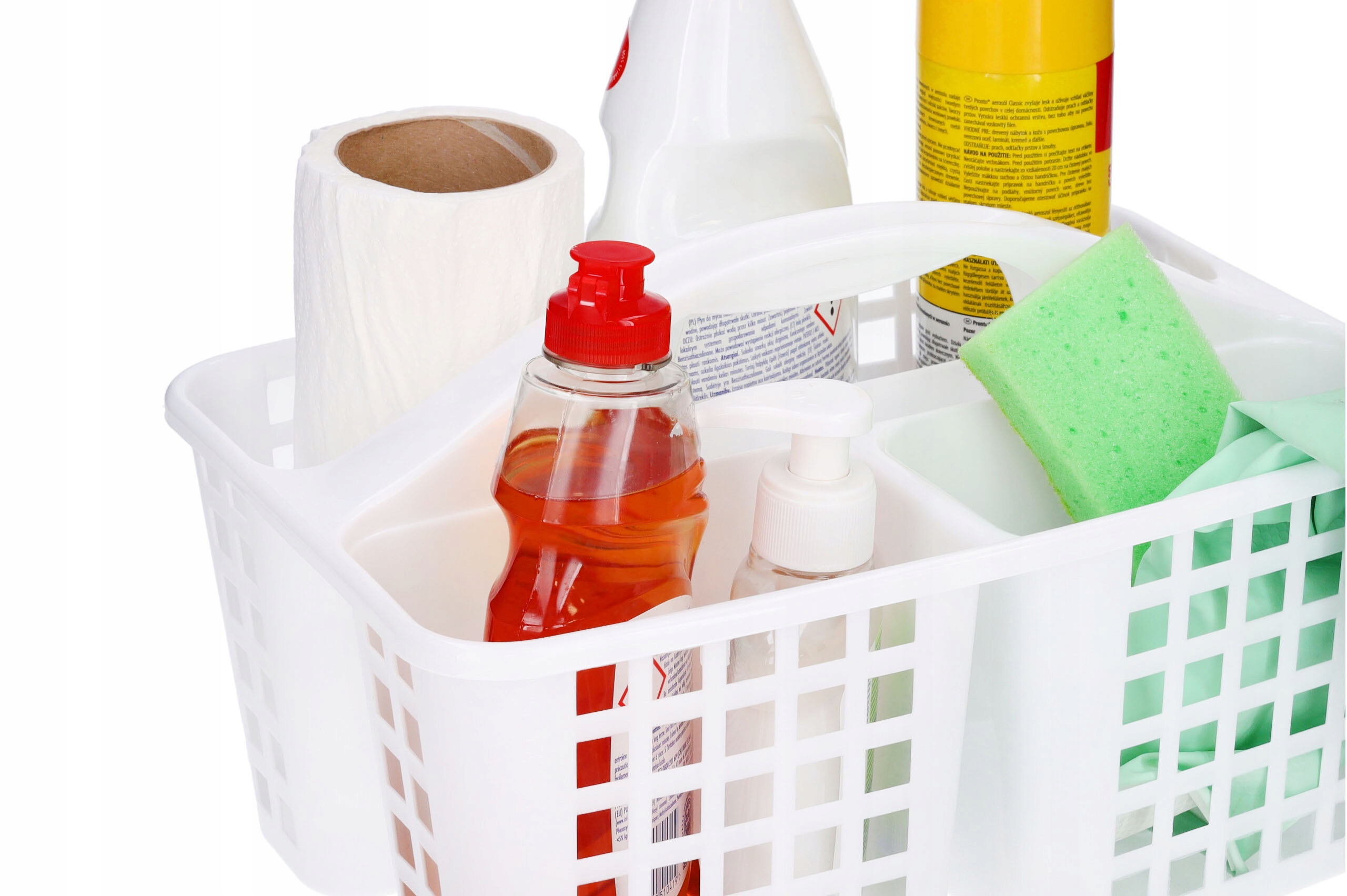 ORGANIZER NA ŚRODKI CZYSTOŚCI pojemnik do łazienki/kuchni przegródki uchwyt