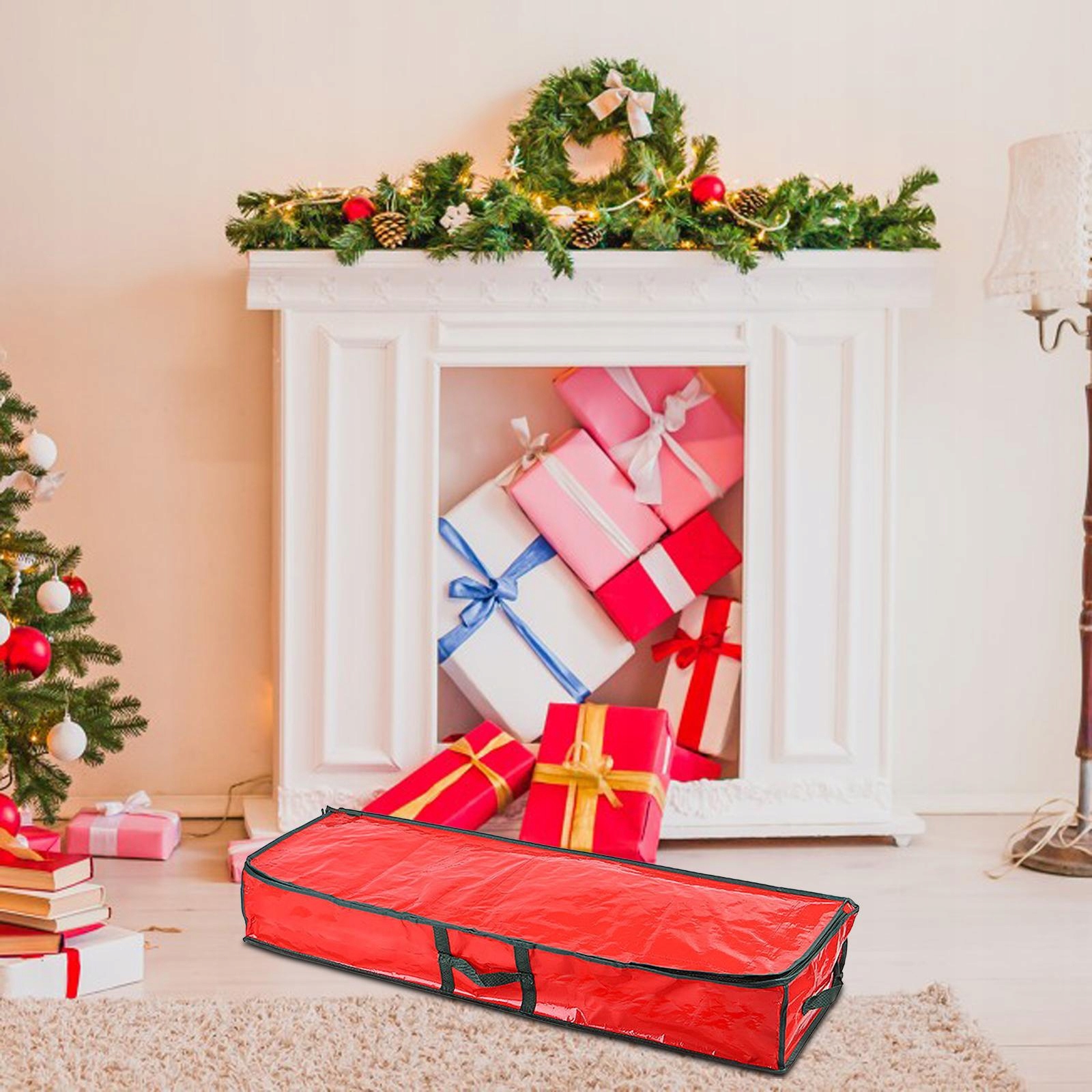 Органайзер для зберігання подарунків. Різдвяний пакет для зберігання обгорткового паперу, червоний