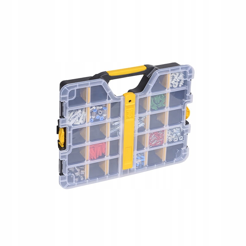 Органайзер EuroPlus Basic на 20 відділень — міцний і функціональний органайзер для майстерні, призначений для зберігання дрібних елементів, таких як гвинти, гайки, дюбелі, свердла та наконечники для викруток. Завдяки 20 знімним перегородкам і напрямним ластівчин хвіст ви можете вільно конфігурувати інтер'єр відповідно до своїх потреб. Органайзер виготовлений з міцного поліпропілену, який гарантує стійкість до механічних і хімічних пошкоджень. Прозора кришка дозволяє швидко знайти необхідні елементи, а засувки та сполучні гачки дозволяють з'єднати до трьох органайзерів в один комплект.