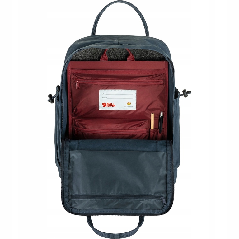 Kånken Organizer Fjallraven створено для шкіл. Усередині рюкзака є додаткові відділення та кишені на блискавці. Оснащений кишенями та петлями для письмового приладдя, він полегшує впорядковане зберігання дрібних речей. Задня стінка органайзера, вставлена в заднє відділення основного відділення рюкзака Kånken, гарантує його стійкість. Органайзер можна вільно зняти за допомогою ручки у верхній частині, виготовленої з стрічкового матеріалу.