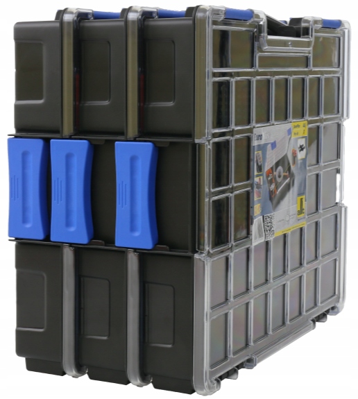 Професійний органайзер для дрібних елементів із пластику. Має інноваційну систему з бічними гачками, що дозволяє підключити два додаткових органайзера (загальною вагою до 12 кг). Вміст можна вільно організувати за допомогою роздільників або внутрішніх контейнерів висотою 63 мм. Спеціально профільована кришка запобігає переміщенню контейнерів та їх вмісту. Кришка прозора і виготовлена з надзвичайно міцного полікарбонату, завдяки чому внутрішню частину добре видно.
