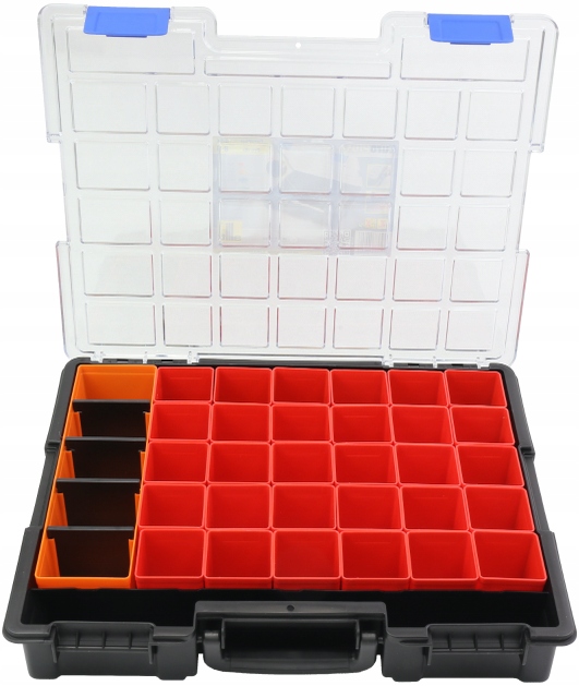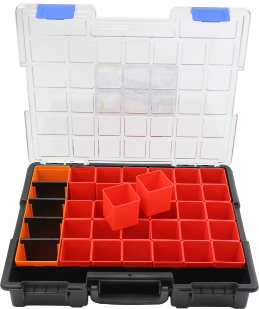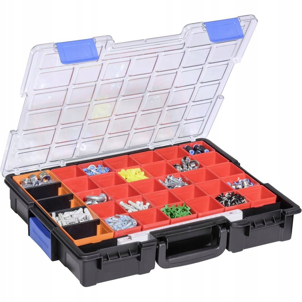 Професійний органайзер для дрібниць із пластику. Має інноваційну систему з бічними гачками, що дозволяє підключити два додаткових органайзера (загальною вагою до 12 кг). Вміст можна вільно розмістити за допомогою відділень висотою 63 мм або внутрішніх контейнерів. Спеціально профільована кришка запобігає переміщенню контейнерів та їх вмісту. Кришка прозора та виготовлена з надзвичайно міцного полікарбонату, завдяки чому внутрішню частину добре видно.