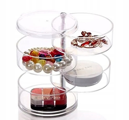 Практичний органайзер для косметики або прикрас з більш щільного пластику. Це дозволяє легко та практично організувати ці аксесуари. Органайзер має 4 рівні, кожен з яких обертається на 360 градусів.