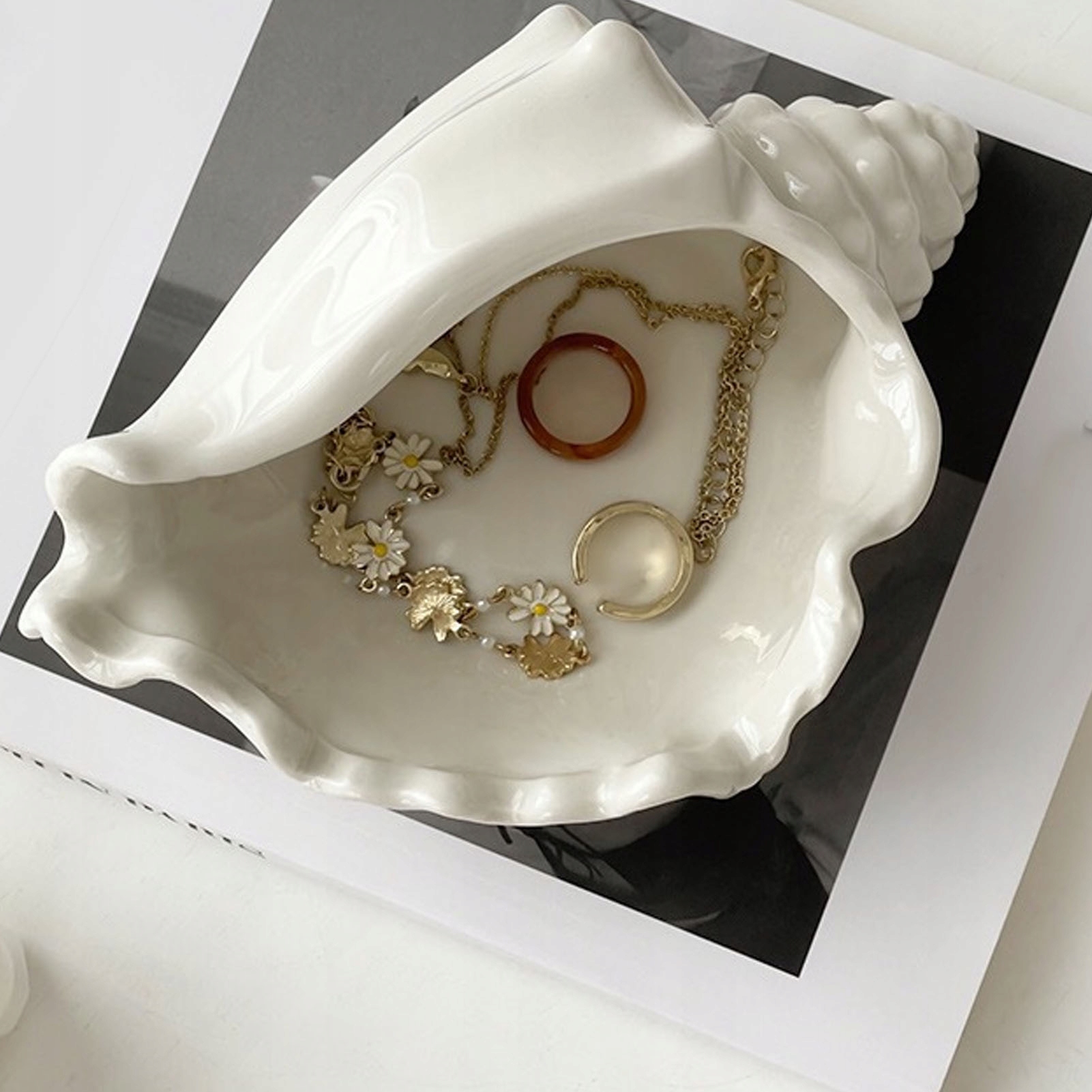 2. Багатофункціональне використання: білу керамічну оболонку можна використовувати для розміщення прикрас, дрібних предметів тощо, що дуже практично.