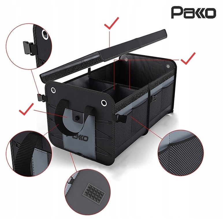 ОРГАНІЗАТОР для автомобіля 56L XXL, посилений, складаний, з клапаном PAKKO (I800)