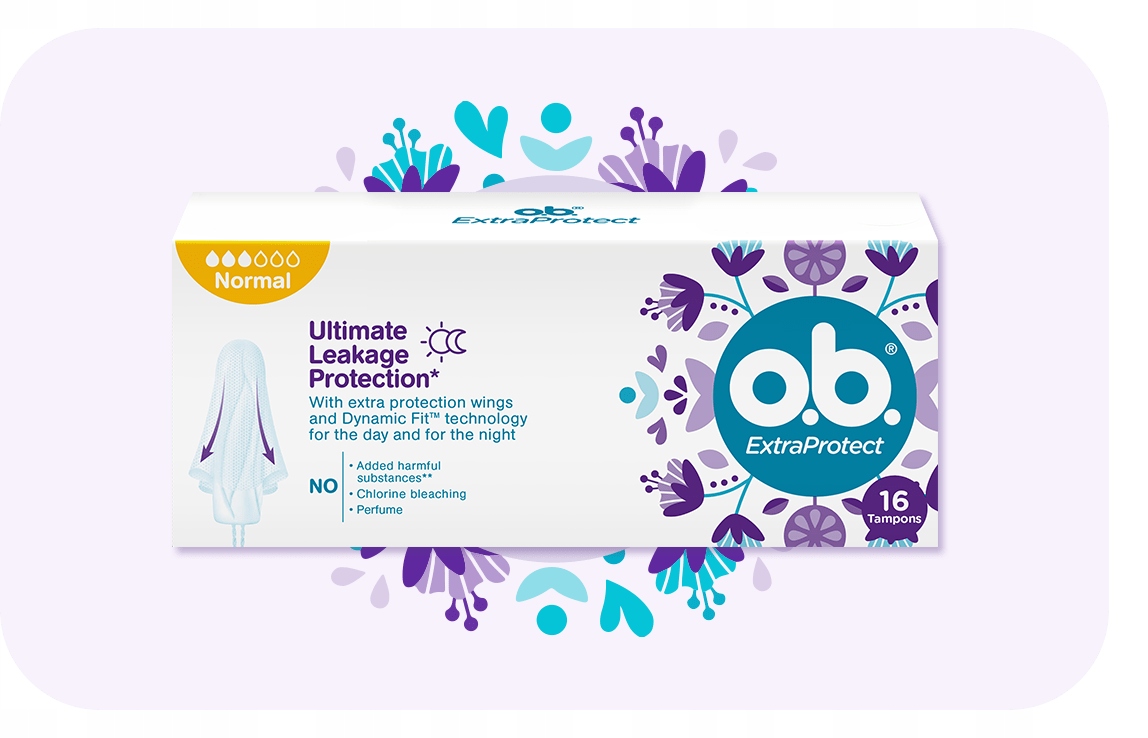 o.b.® Extra Protect забезпечує до 100% захисту від протікання* як протягом дня і вночі вночі.