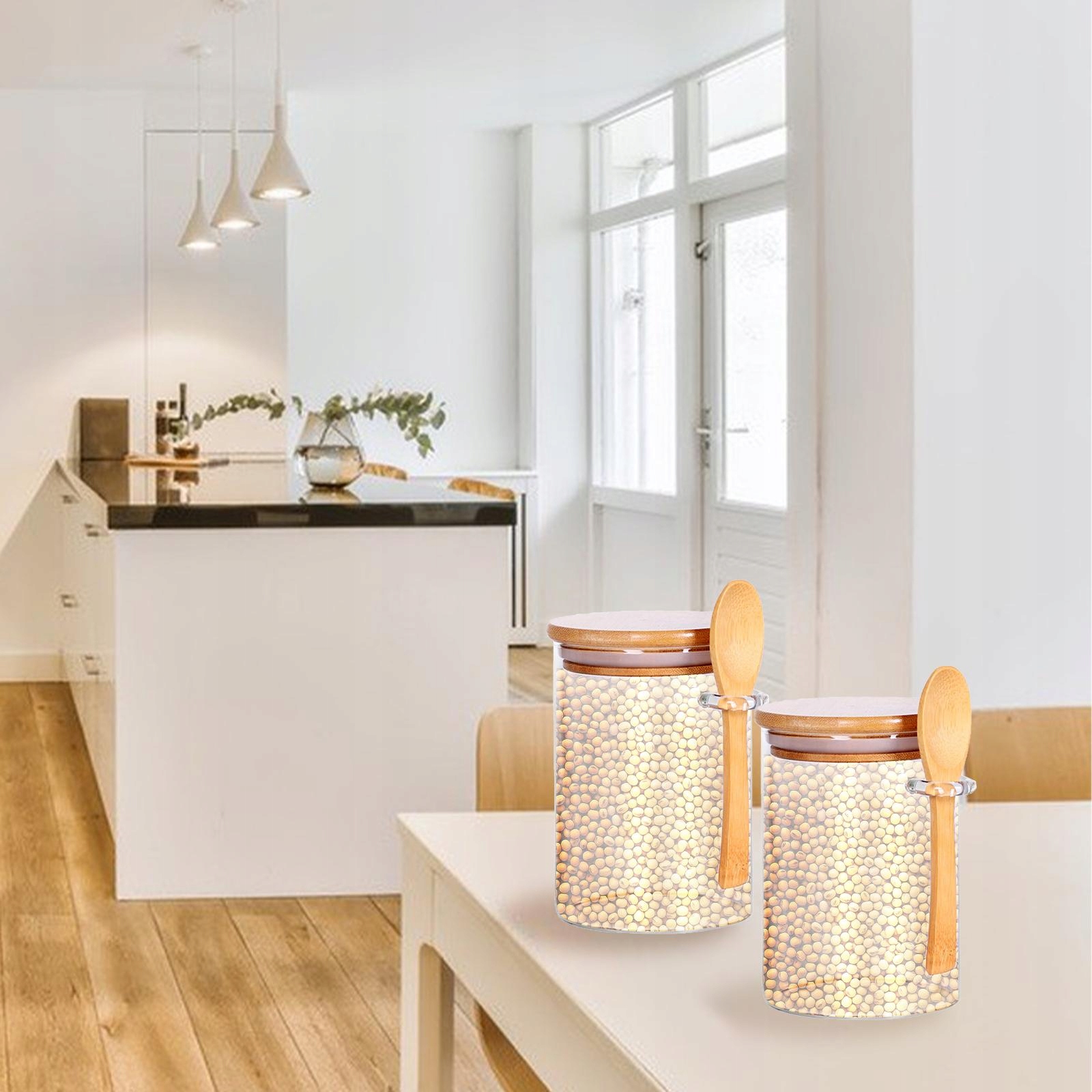 [Багатофункціональний]: банку для зберігання їжі можна використовувати для зберігання різних харчових продуктів, таких як насіння кави, цукор, горіхи, чай, сухі продукти, борошно, спеції тощо. З кришкою та ложкою, простим у використанні.