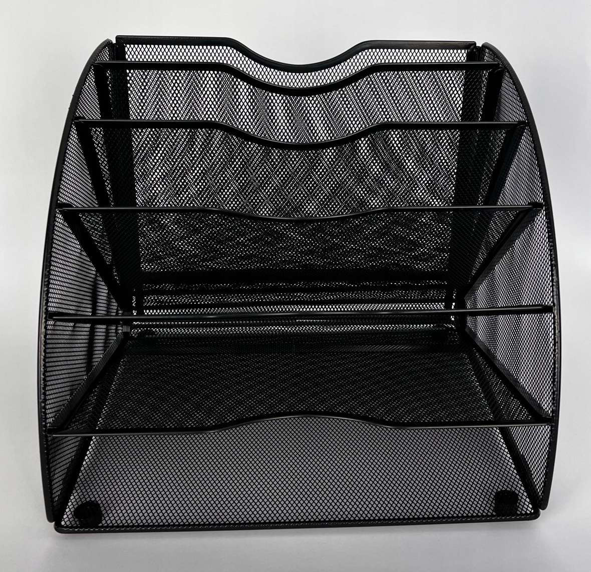 Елегантний організатор столу, повністю виготовлений з металу (версія після модернізації). Сприяє сегрегації та зберігання листування, документів, журналів, що дозволяє заощадити місце на столі або прилавку прийому.