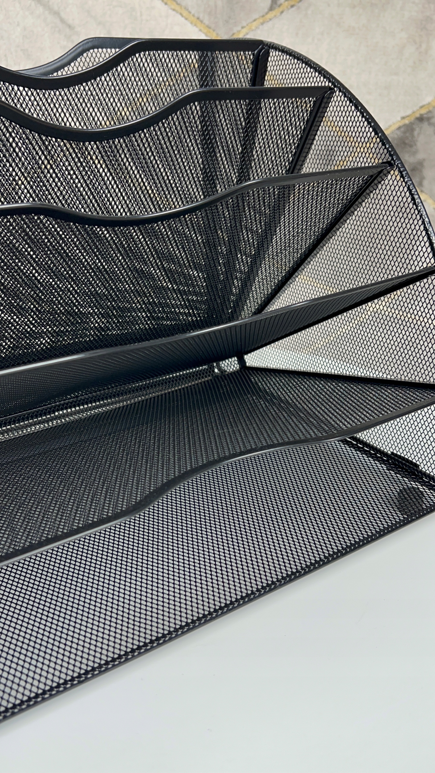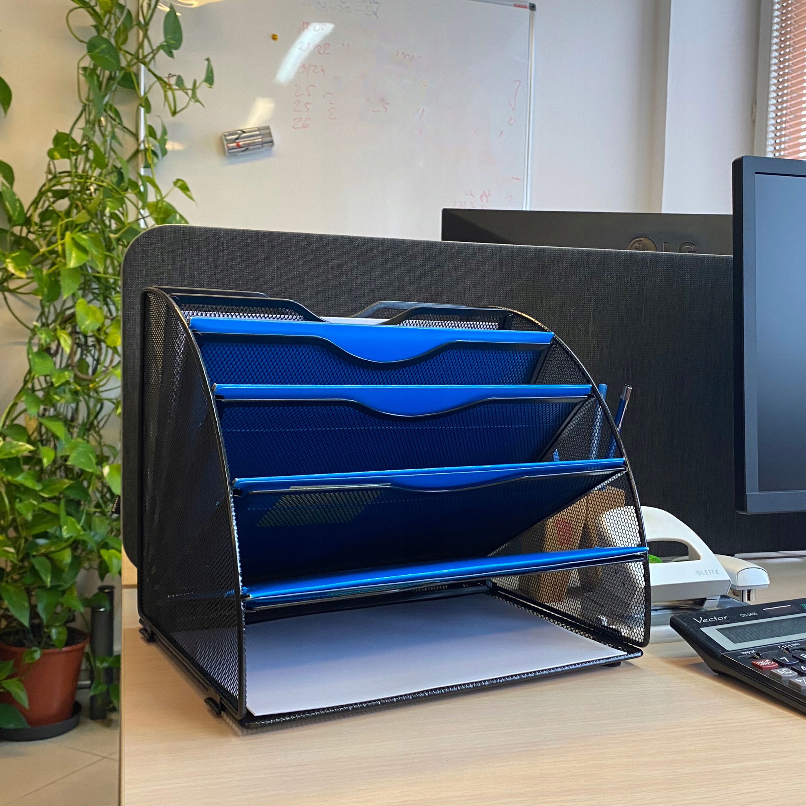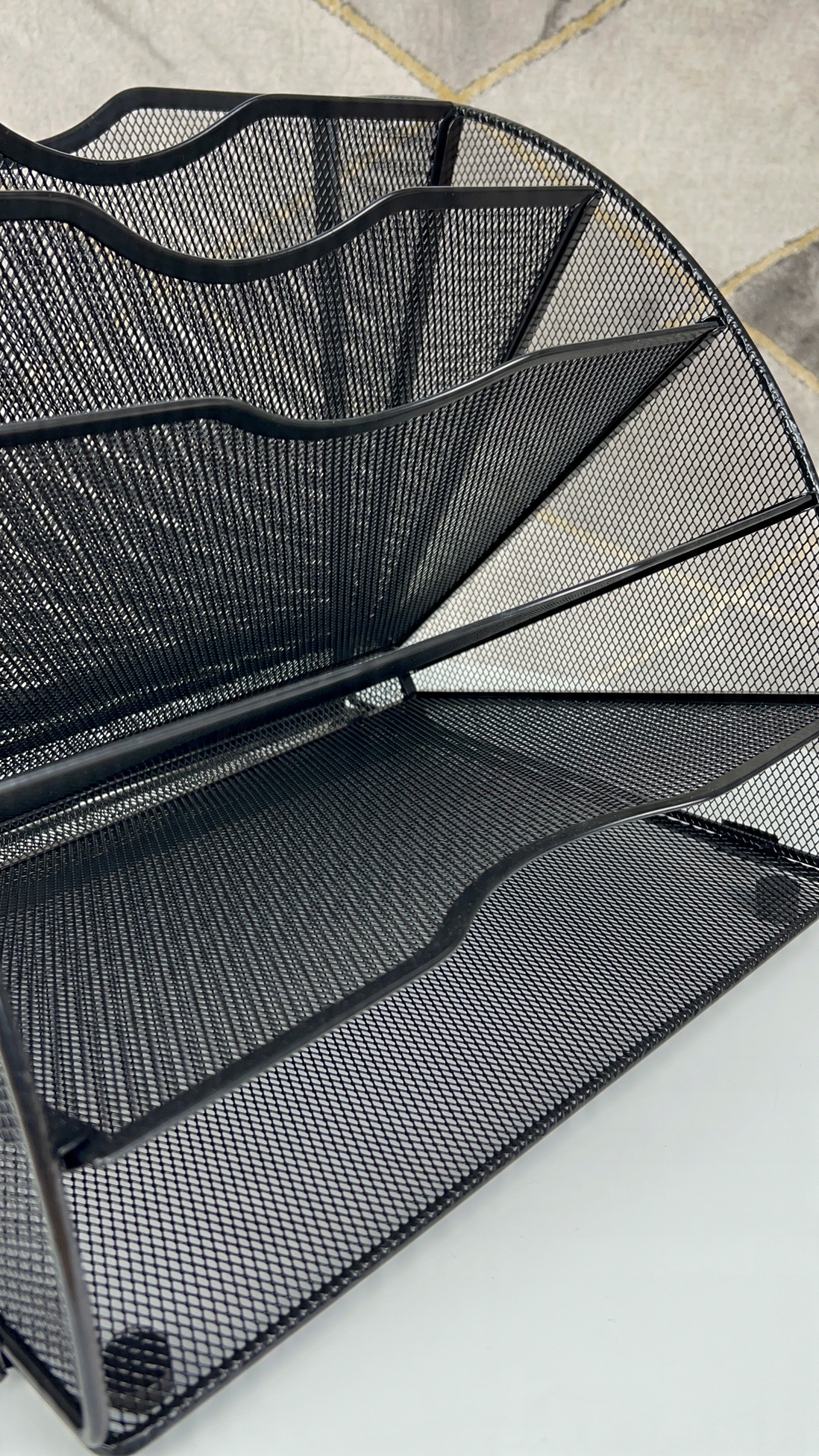 Оригінальна форма: Завдяки цій оригінальній формі вентилятора, організатор ідеально використовує простір на столі, і в той же час виглядає естетично. Зберігання різних предметів, таких як листування, документи чи журнали.