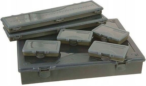 Повний комплект із шести органайзерів, включаючи: 1 x Tackle Chest XXL, 2 x Rig Treasure, 4 x St-Chest. Органайзери Anaconda Tackle Chest виготовлені з високоякісного, ударостійкого пластику та оснащені системою засувок Long Life. Кришка призначена для запобігання проникненню дощової води зверху. Система Vario дозволяє розділити простір за вашим бажанням. Rig Treasure використовується для безпечного зберігання лідерів. Всередині є місце для 15 лідерів. На верхню планку можна повісити гачки. Вертлюги кріпляться знизу шпильками - 20 з них розташовані в двох невеликих прикріплених коробках. St-Chest — органайзер із заокругленими краями, завдяки чому його легше (простим натисканням) вийняти з органайзера.