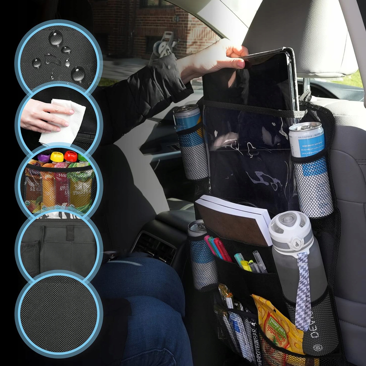 ✔ Велика потужність: Організатор на задній частині крісла автомобіля забезпечує багато місця для зберігання напоїв, закусок, книг, іграшок тощо, завдяки якому подорожі з дитиною стає легше і приємніше. Він легко підходить до планшетів до 10 дюймів, спеціально розроблених для дітей, які переглядають фільми. Спеціальний матеріал і можна легко очистити вологою губкою або тканиною. Підходить для більшості автомобілів і є ідеальним аксесуаром для автомобілів.
