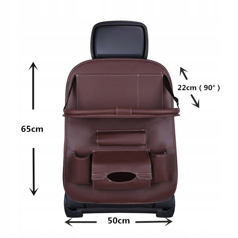 Організатор був виготовлений з міцного, водонепроникного матеріалу, який не пошкоджує і не мокрить. Ви можете легко очистити його вологою тканиною, адже еко-шкірка не поглинає бруд. Однак це ще не все. Полиця, яку ви можете використовувати у двох положеннях, може зберегти вагу до 15 кг. Завдяки цьому ви встановите все, що завгодно, наприклад, напої, необхідні під час подорожі.