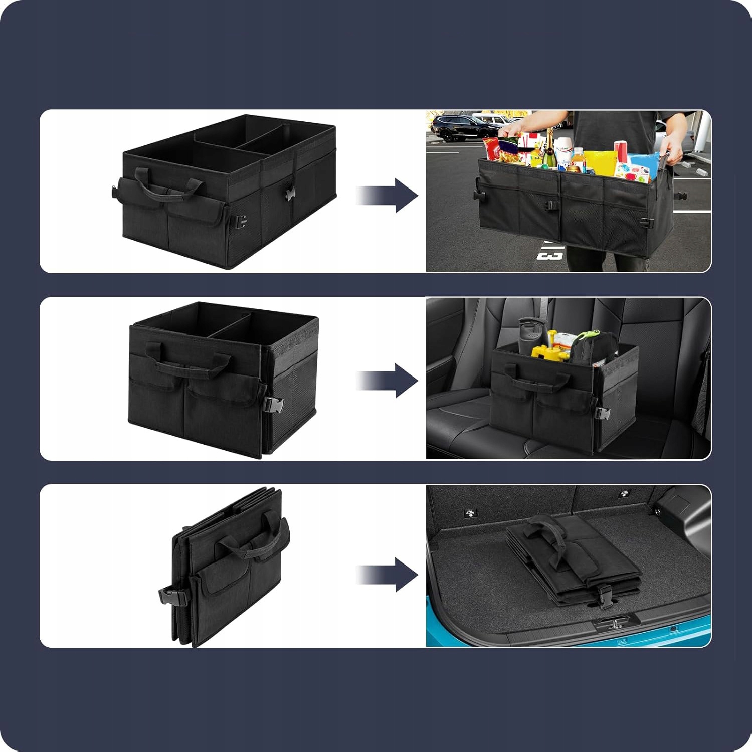🚘🚘 Стабіальна та безпечна: Завдяки ремінам, що не належать до слизу, наша складна коробка автомобіля стабільна на місці. Організатор завершується водонепроникний та ультрафіолетовий матеріал та легкість очищення. Легко перевозити завдяки підкладеним ручках.