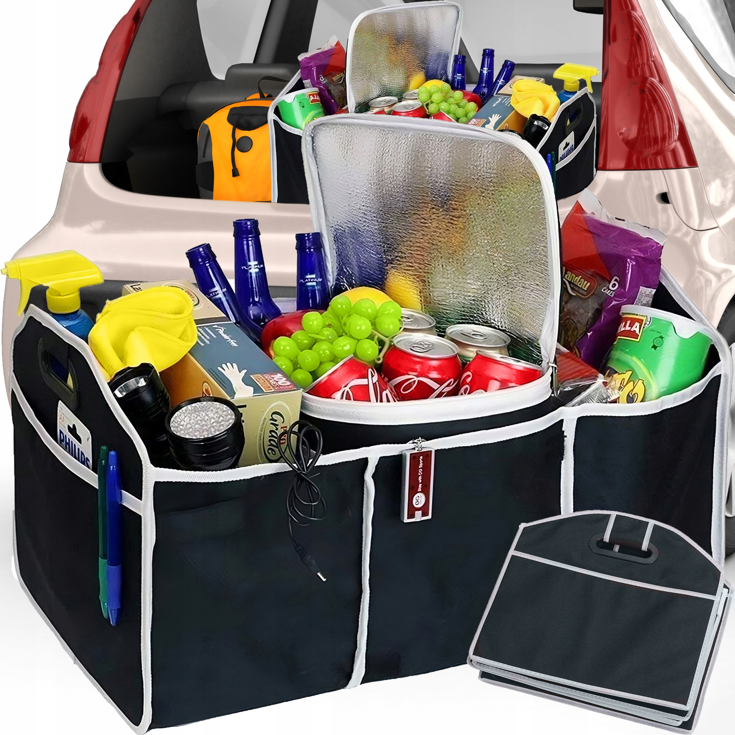 Кожен з нас хотів би, щоб в машині був спокій і порядок, але не завжди це виходить. Якщо, подорожуючи автомобілем, ви перевозите незліченну кількість дрібниць, які, незважаючи на те, що ви тримаєте їх у порядку, все одно мають свої правила, цей аукціон точно для вас. Містка сумка дозволить зберігати все, що завгодно, а 3 великі відділення дозволять упорядкувати речі або відсортувати покупки. Органайзер є важливим автомобільним аксесуаром для безпечного транспортування речей у багажнику, а також залишає вам багато місця в автомобілі.
