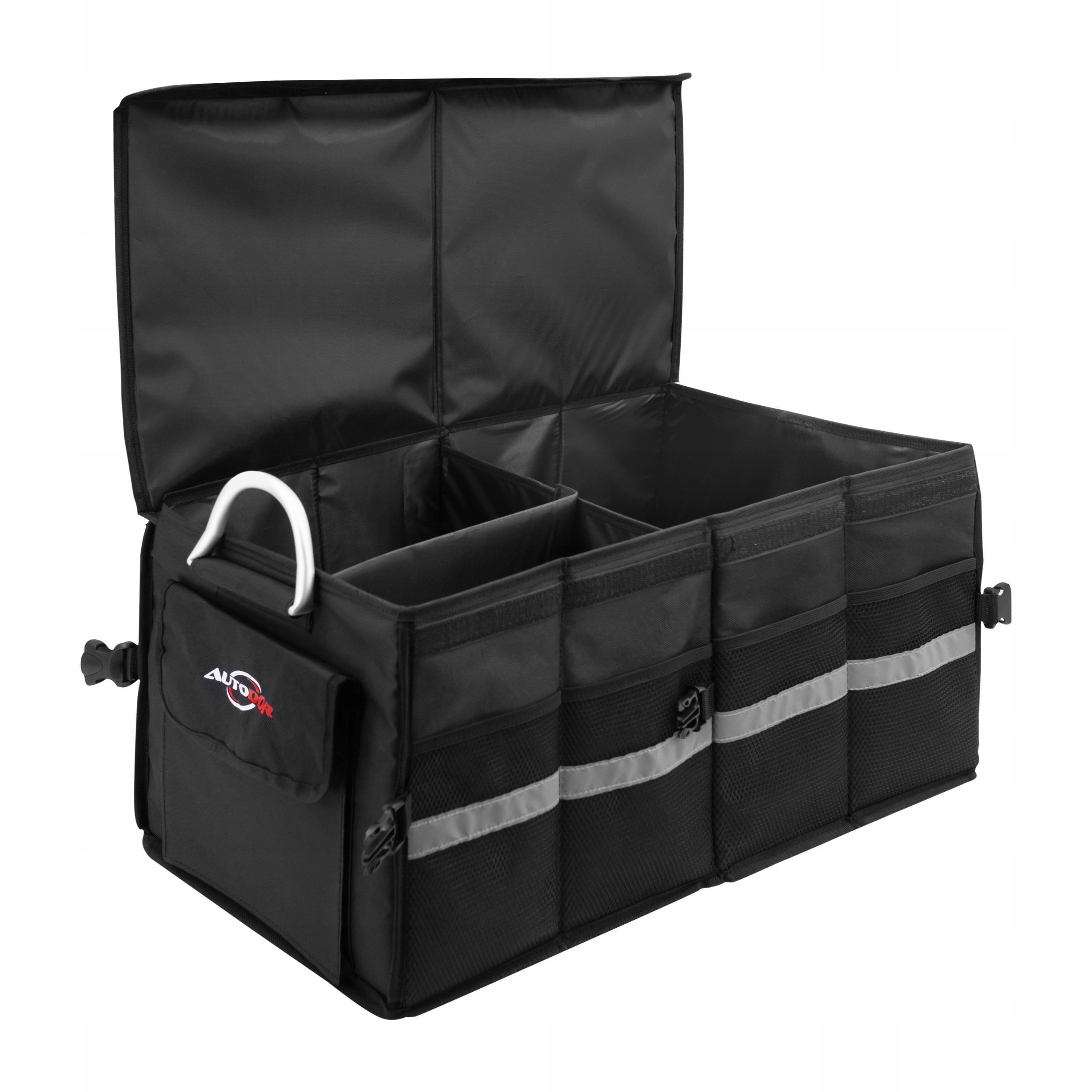 Сумка поділена на секції, що дозволяє зберігати навіть дуже важкі предмети з гострими краями, такі як вогнегасник, аптечка, трикутник попередження, масло, склоомивач, запасні лампочки, ключі, буксирний трос, троси та багато іншого. Він також обладнаний зручними ручками, які полегшують перенесення.