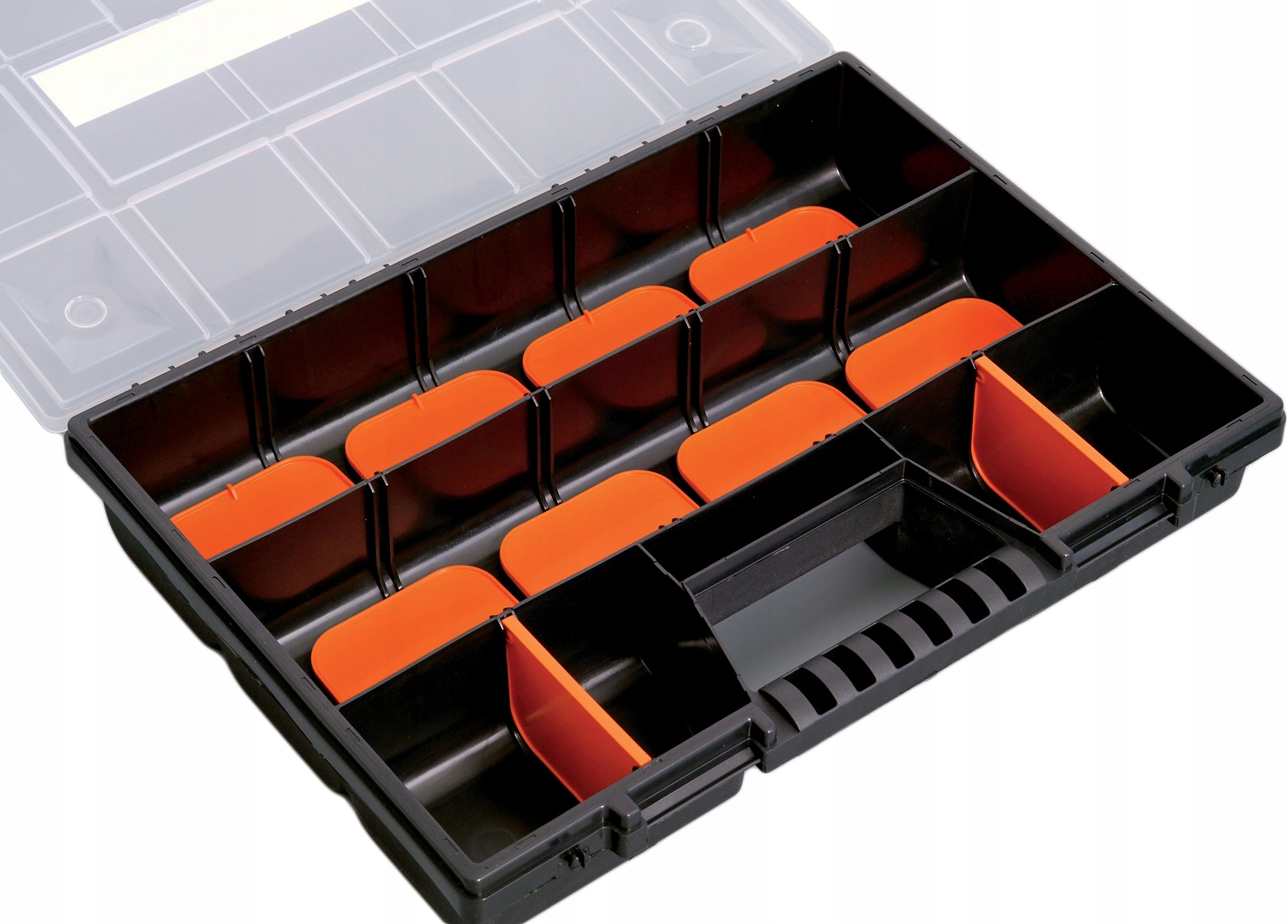 Універсальні органайзери серії Nor з регульованими відділеннями - зручне рішення, що дозволяє регулювати розмір і кількість відділень під свої потреби. Прозора кришка дозволяє побачити, що всередині, не відкриваючи її, а завдяки міцній ручці органайзер можна легко перенести в інше місце.