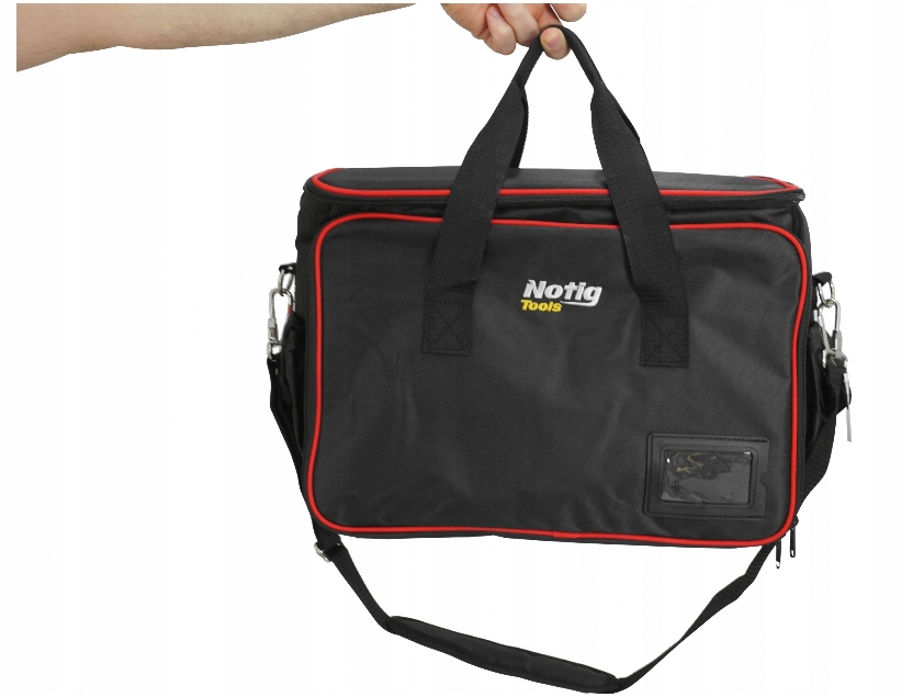 Сумка для інструментів із надзвичайно міцної водонепроникної оксфордської тканини 600D. Ідеально підходить для зберігання і транспортування інструментів. Його також можна використовувати як сумку для ноутбука, зручну дорожню сумку або спортивну сумку. Основне відділення розділене на три частини. Сумка має дві бічні кишені, що застібаються на липучку і додаткову кишеню спереду на блискавці. Посилене дно сумки захищає від стирання. Має регульований плечовий ремінь із протектором і візитницю.