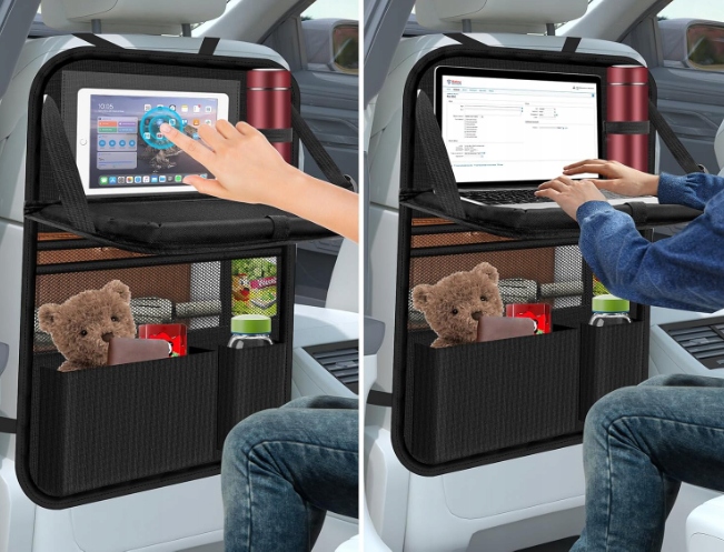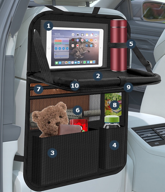 Ваша дитина може їсти, малювати, грати або дивитися казки завдяки зручному столу та прозорому кишеню планшетів . Організатор перетворює задній диван у ігровий центр - ідеально підходить для довгих маршрутів!