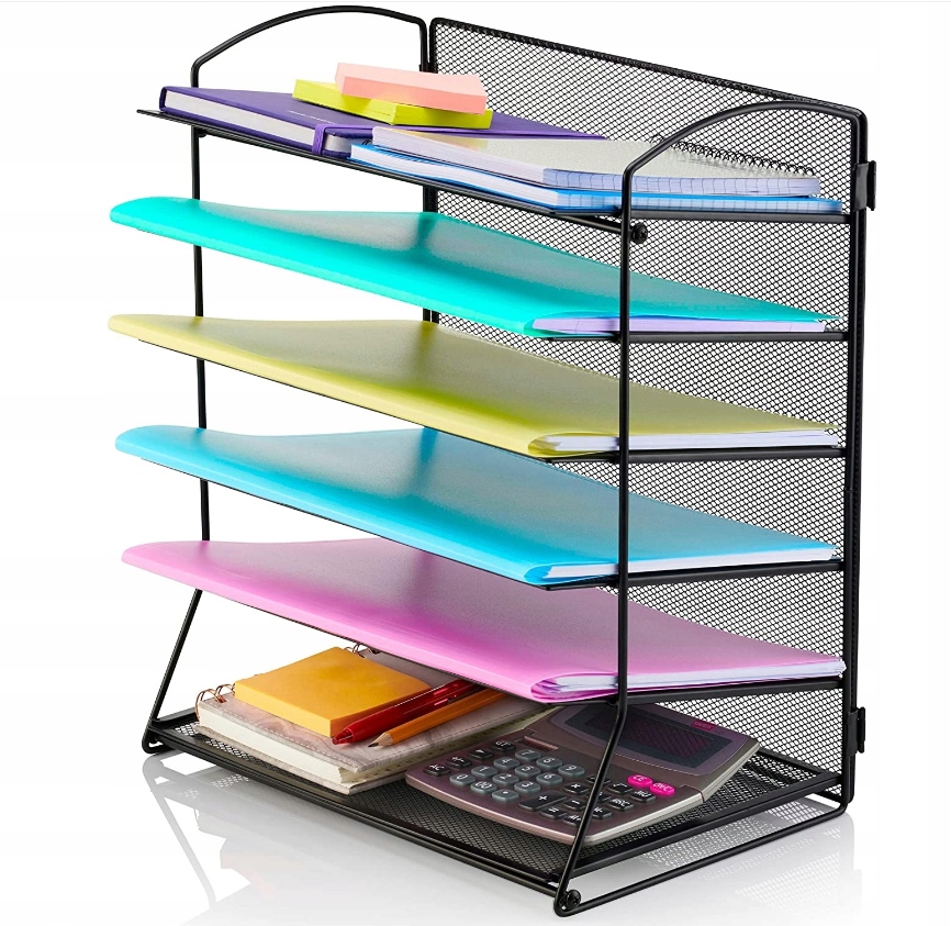 Організатор для документів 6 A4 полиць Чорний метал для офісу, офісу, класу