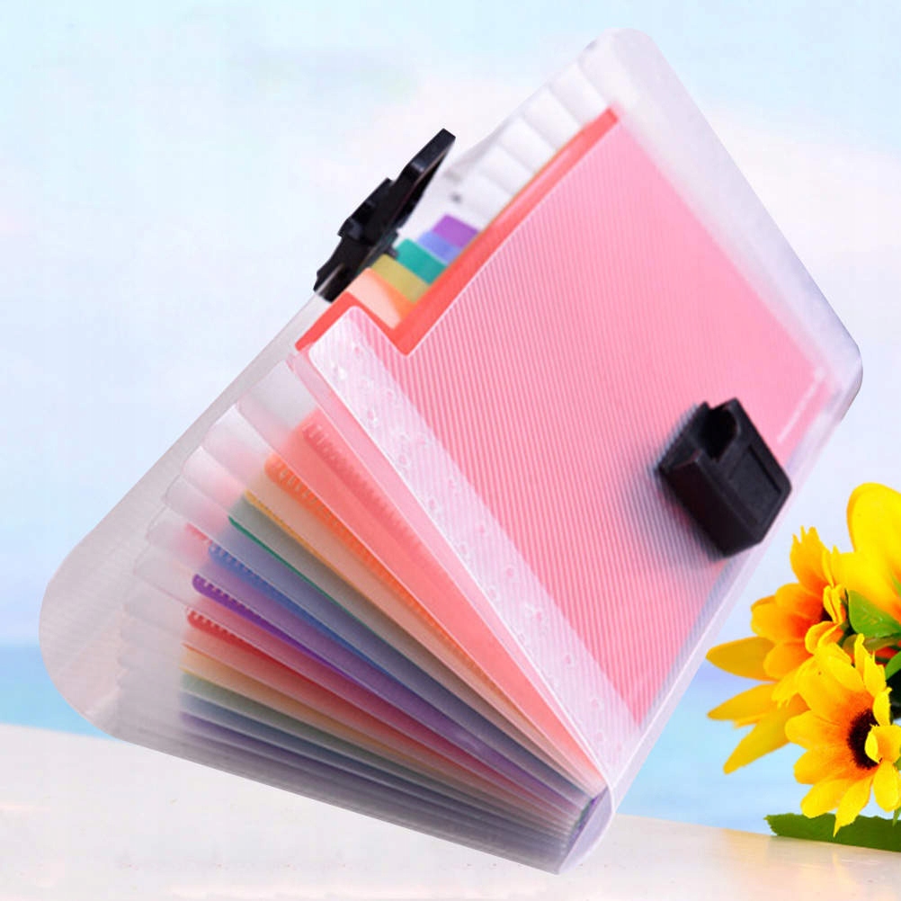 ✅ Професійний пластик і практичний. 13 кольорів окремих кишень, велика ємність для близько сотень аркушів паперу, придатні для паперу A6.