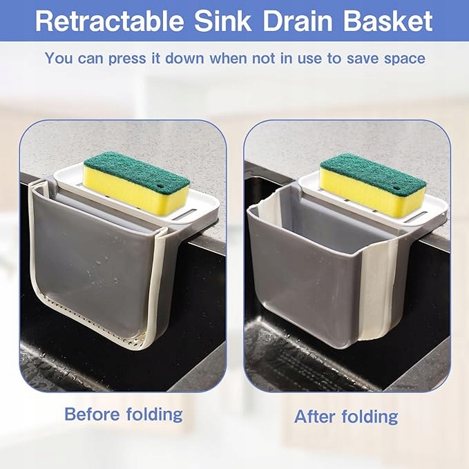 - Широке застосування: наш кошик для крапель для кухонної раковини можна використовувати як кошик для крапель, а також як кошик для вологого та сухого сміття з піддоном у верхній частині для зберігання кухонного начиння, наприклад губок для чищення та щіток.