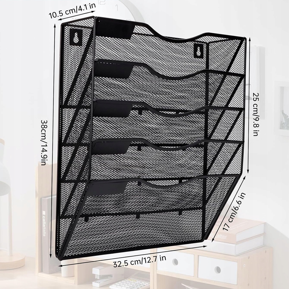 Наш підвісний органайзер для документів виготовлено з високоякісного металу, має міцну конструкцію, має порошкове покриття, стійке до іржі та зношування. Завдяки ажурній металевій сітці він забезпечує кращу вентиляцію, а його вертикальна пропускна здатність на 20% більше, ніж у традиційних систем. Не вимагає складання - готовий до використання прямо з коробки. Легко кріпиться на будь-яку стіну, довго зберігаючи свою форму.