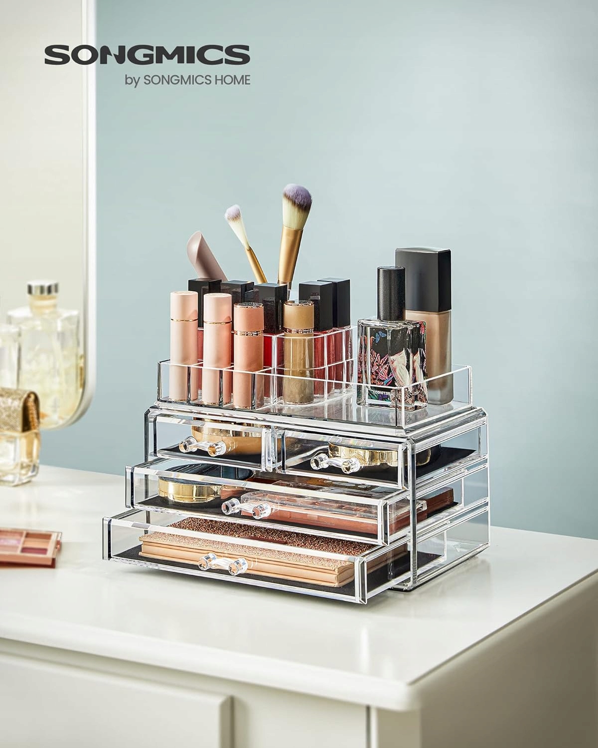 - Красива красуня: Той факт, що ви можете бути задоволені своїм макіяжем рано вранці, - це не лише заслуга ваших навичок або те, що ви особливо активна поранена птах. Той факт, що ви можете швидко знайти аксесуари для макіяжу, також значною мірою сприяє вашому задоволенню. Тому впорядкуйте свій макіяж з цим організатором для косметики та зробіть своє життя зручнішим і стресом -безтурботним! Зробіть -up Організатор 2 в 1: Використовуйте дві частини косметолога разом, коли у вас мало місця для зберігання або в двох різних місцях. Наприклад, ви можете покласти верхню частину з 11 купорами помади, щіткою та лаку для нігтів окремо на туалетному столику. Тіні для очей, пінцет та ін. Також можна приховати в 4 ящиках.