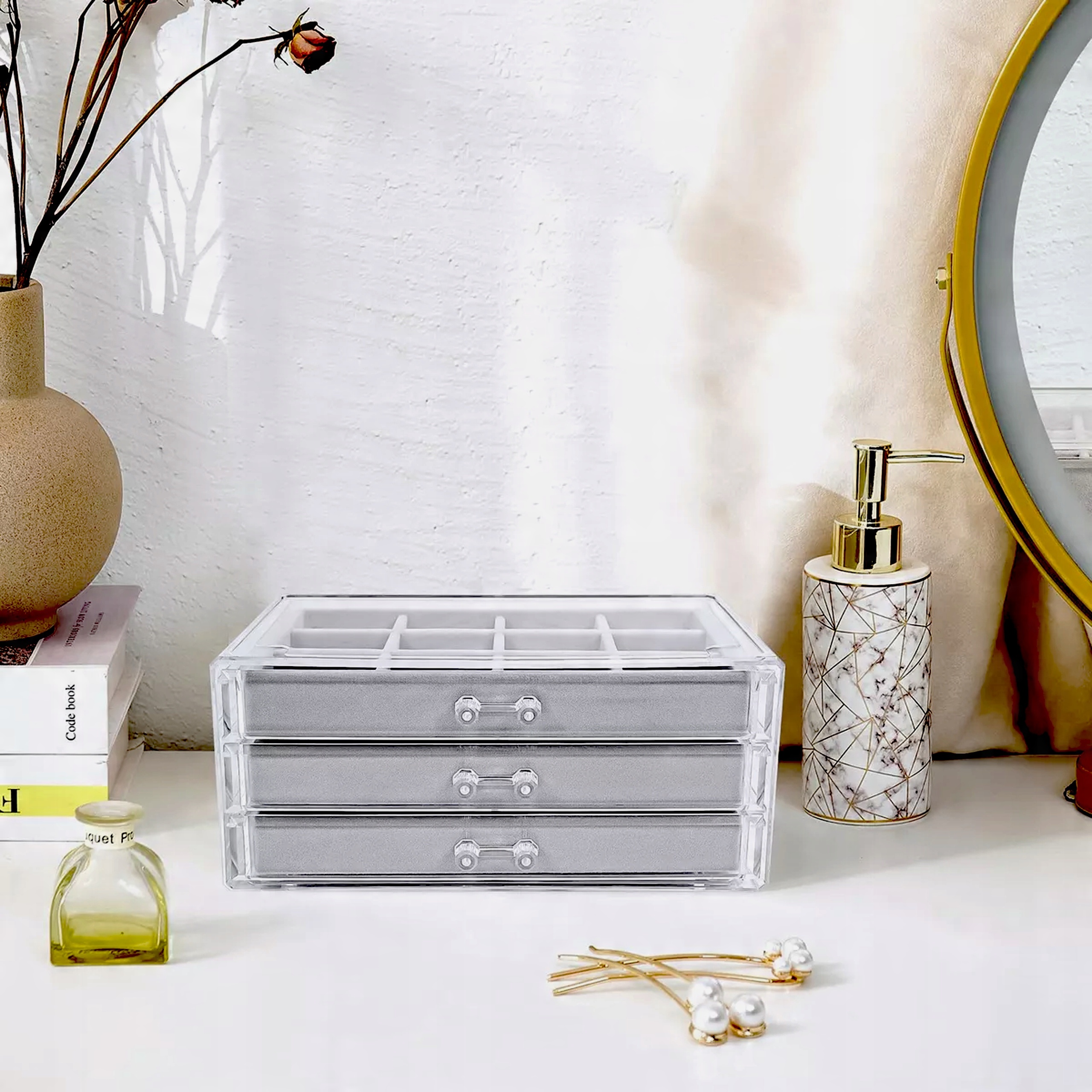 ⭐ 3 місткі висувні ящики з ручками забезпечують легкий доступ до прикрас.