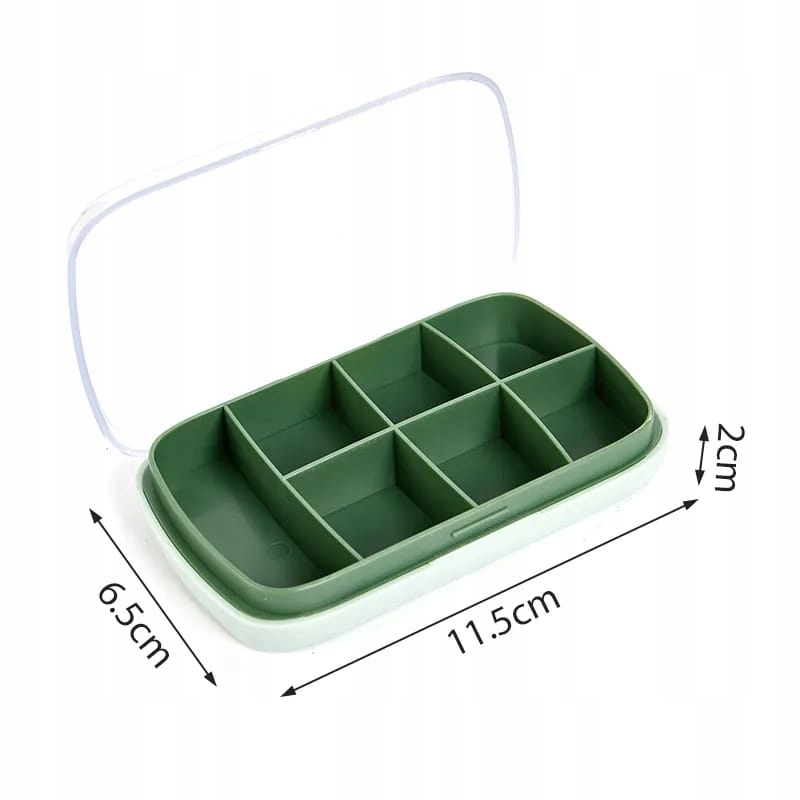 Контейнер для ліків із сімома відділеннямиє ідеальним рішенням для людей, які хочуть контролювати щоденне споживання ліків. Невеликі розміри дозволяють брати органайзер з собою в подорож, він також буде використовуватися вдома. Він має класичний візерунок і виконаний з увагою до деталей, завдяки чому виглядає елегантно. Він міцний, міцний і водонепроникний