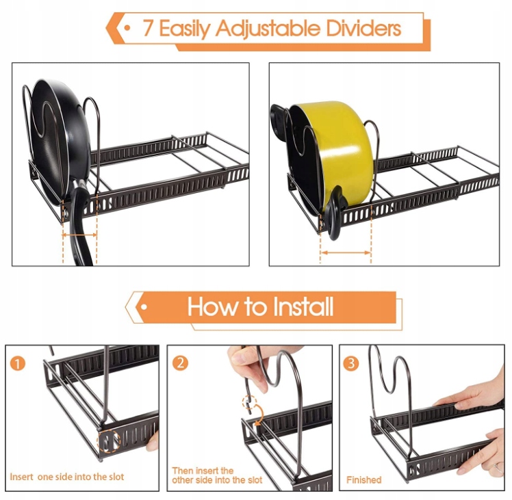 - Завдяки вбудованому розсувному механізму, цей інноваційний органайзер можна поступово переміщати від 12,25 до 22,25 дюймів, що робить його дуже корисним навіть у найтісніших кухонних приміщеннях.