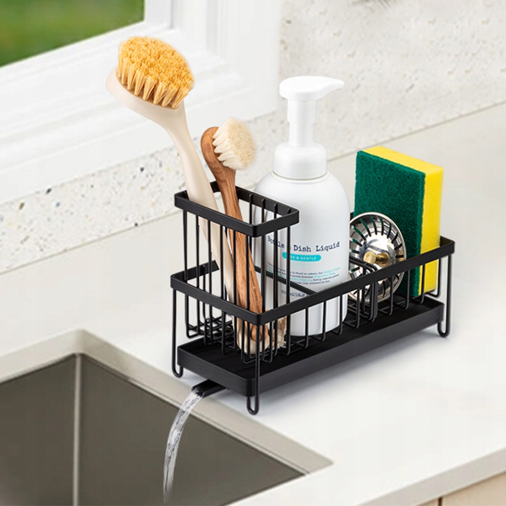 Ергономічні відділення цього органайзера для раковини забезпечують три окремі місця для зберігання. Різні предмети можна розміщувати в різних місцях, повністю використовуючи кожен дюйм простору та зберігаючи кухню чистою.