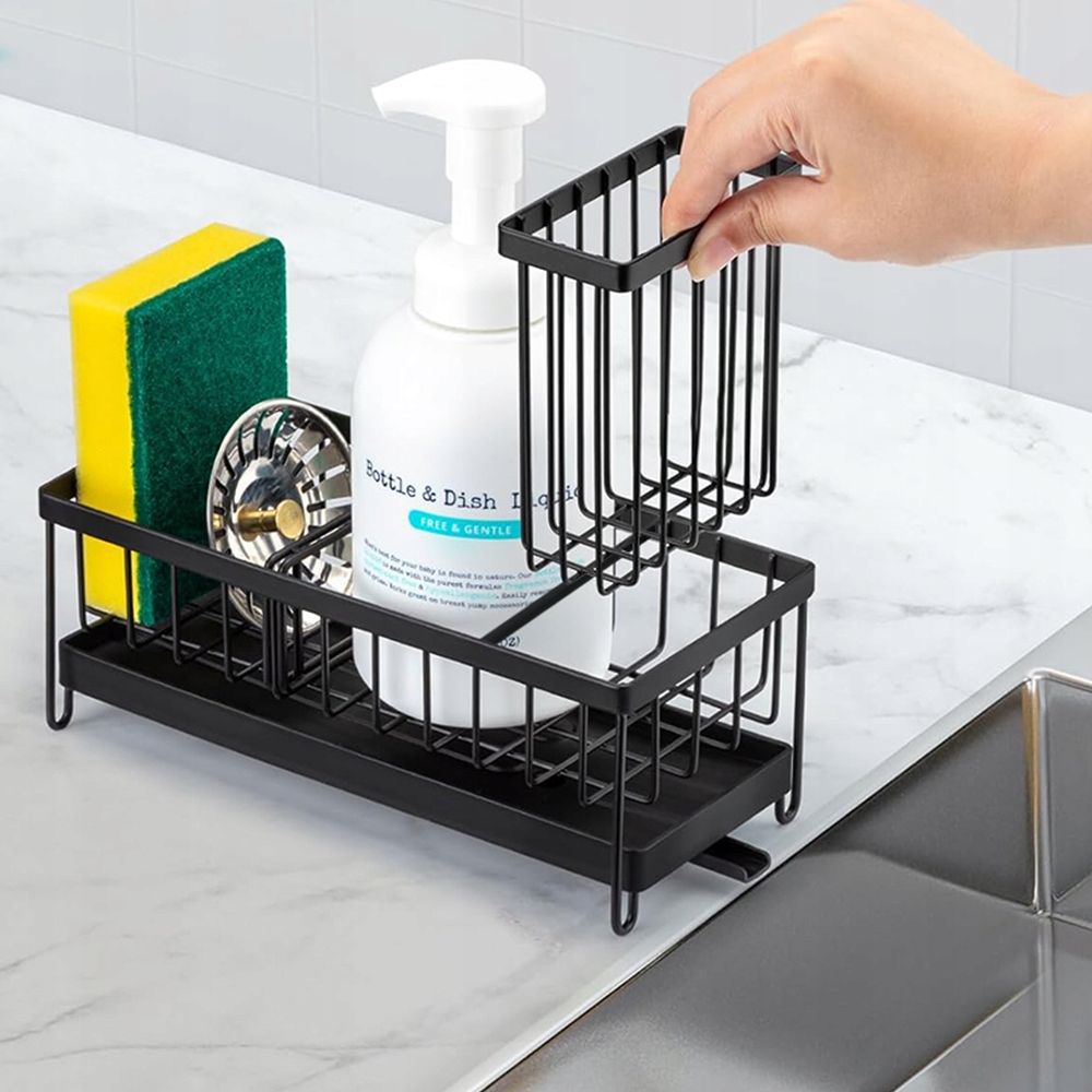 Цей органайзер для кухонної раковини має знімні відділення, які дозволяють вільно регулювати відстань між ними.