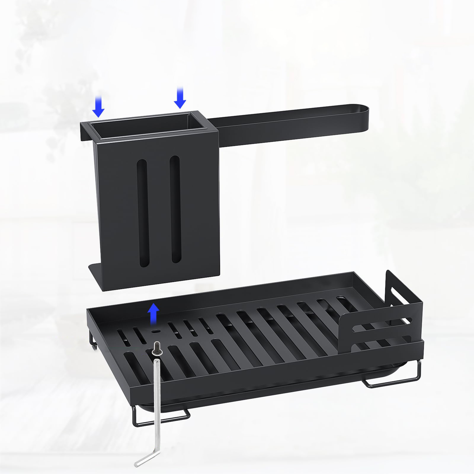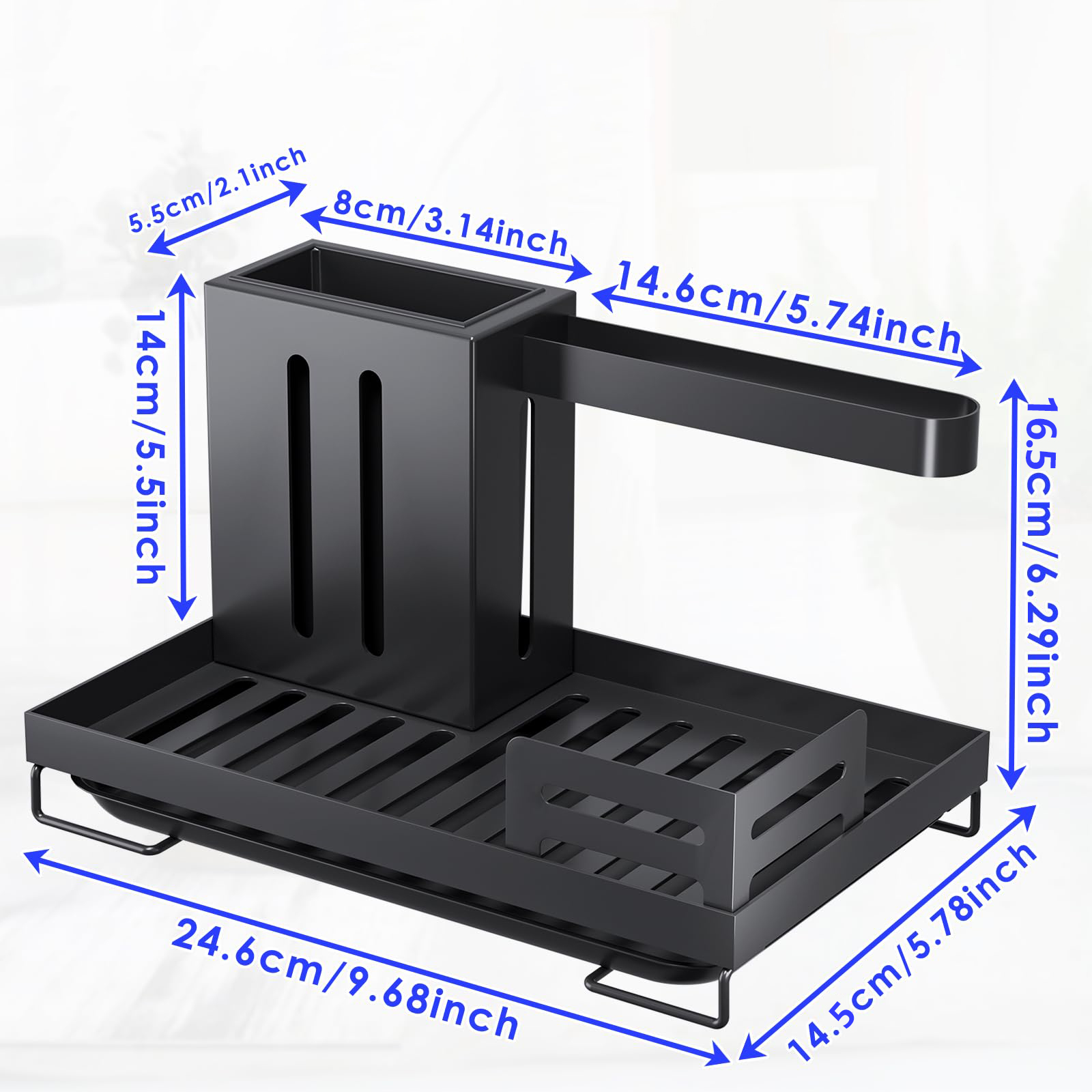 Вбудовані рейки забезпечують простір для підвішування та сушіння тканин. Піддон для крапель, який легко знімається, запобігає виникненню крапель і полегшує очищення. Стелаж для кухонного посуду, вішалка для одягу з 2 способами кріплення. Порядок і чистота: повісьте на стіну або поставте прямо на стіл. Пропонуємо клей без дирокола для настінного кріплення. Ідеально підходить для впорядкування губок, щіток і мила.