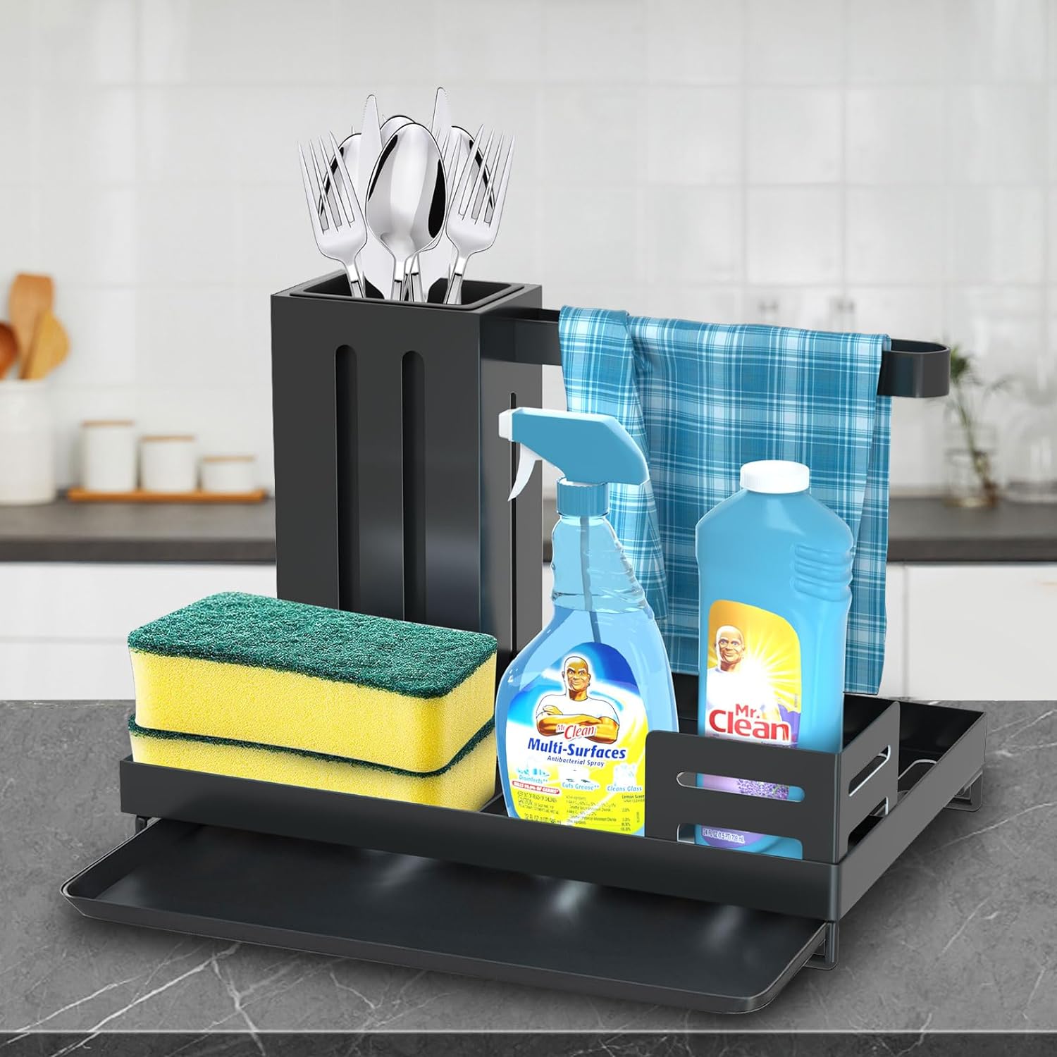 Ваш організаційний помічник для зберігання пензлі та губки. Окреме місце для щіток для овочів, дозаторів мила, рушників тощо. У наших ящиках для зберігання достатньо місця для приладдя для чищення.
