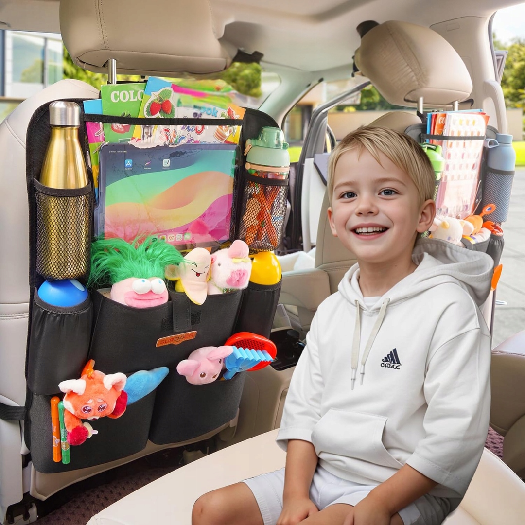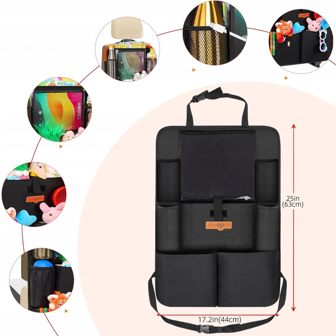 Організатор для автокрісла - 4 -е покоління вдосконалено організатор автомобіля для заднього сидіння до 10,5 таблеток та 9 кишень, зберігання іграшок, водонепроникний (1 ПК, чорний)