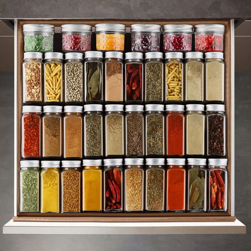 🎀🎀🎀Багатофункціональний: використовуйте ці кухонні контейнери для зберігання трав, спецій, солі, спецій, каррі, насіння та аксесуарів для випічки. Організуйте свої добавки, вітаміни, настоянки, олії та ліки. Ви можете використовувати їх, щоб упорядкувати лаки для нігтів, парфуми, лосьйони, дезодоранти, косметику, губну помаду та іншу косметику. Вони також ідеально підходять як канцелярське приладдя та дрібні предмети своїми руками.