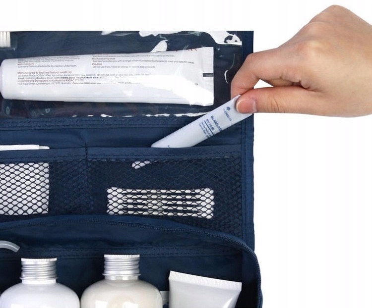 ✔️ Косметичка також має спеціальну ручку, завдяки якій уже розкладену косметичку можна повісити, наприклад, на гачок у ванній.