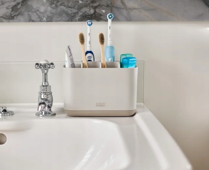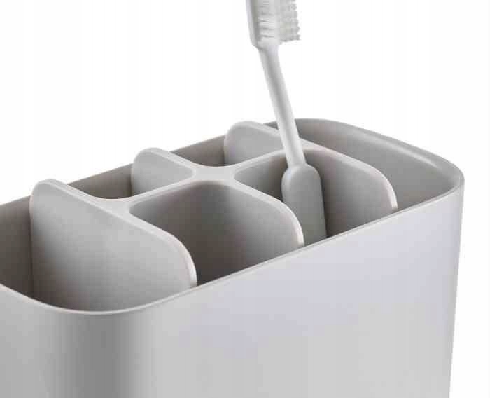 Тримач для зубних щіток Joseph Joseph, який дозволяє підтримувати порядок у ванній кімнаті. Завдяки їм аксесуари для ванної кімнати впорядковані та завжди на місці. Має два відділення, тому для кожної зубної щітки знайдеться своє місце. На стінці контейнера є вентиляційний отвір, завдяки якому щітки і контейнер швидше висихають. Ідеально підходить для зберігання класичних і електричних зубних щіток, зубної пасти і нитки. Крім того, це виглядає дуже сучасно та красиво.