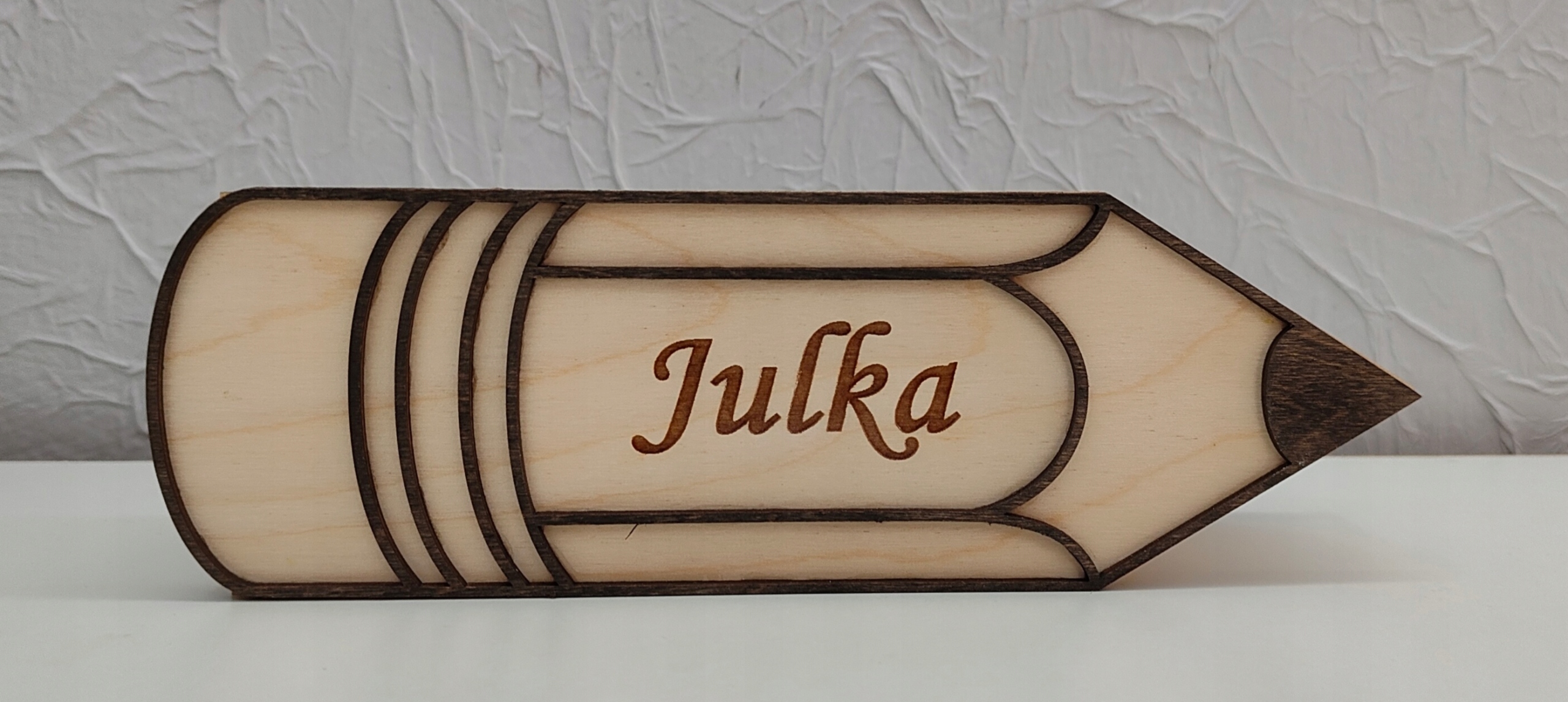 Основна, виготовлена з 3 мм фанери. Назва вигравірована.