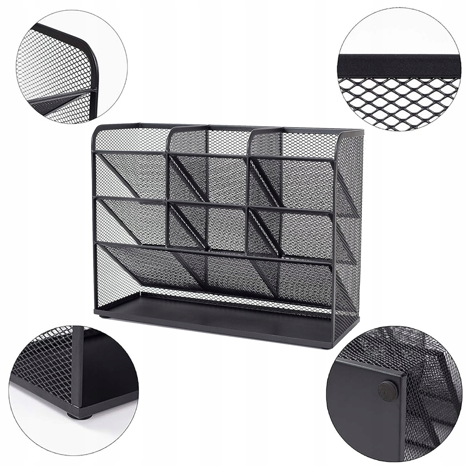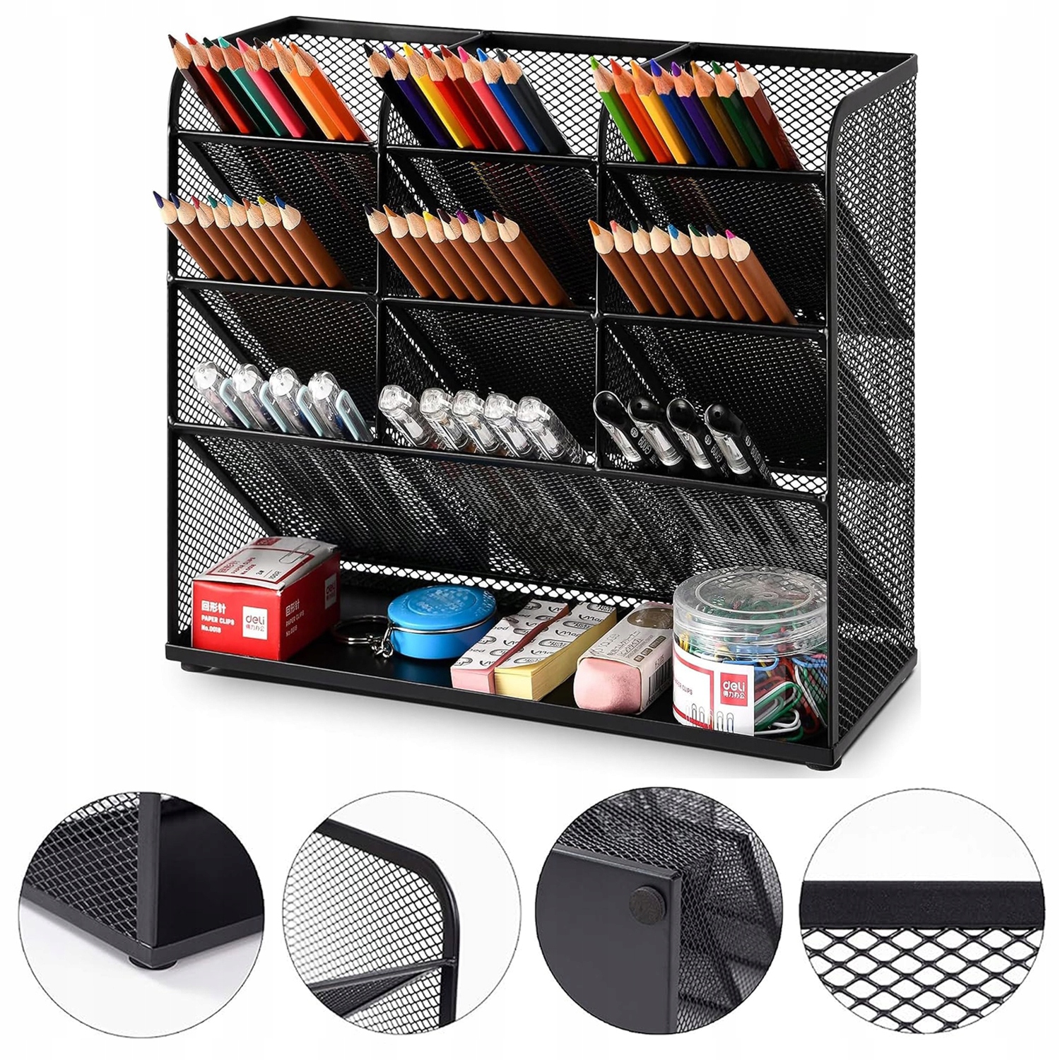 Цей організатор столу має 10-сиатну систему з обгортанням, що забезпечує багато місця для акуратного розташування офісних матеріалів або особистих предметів. Незалежно від того, організовуєте ви ручки, олівці, олівці чи невеликі інструменти, цей набір інструментів підтримує все добре та під рукою.