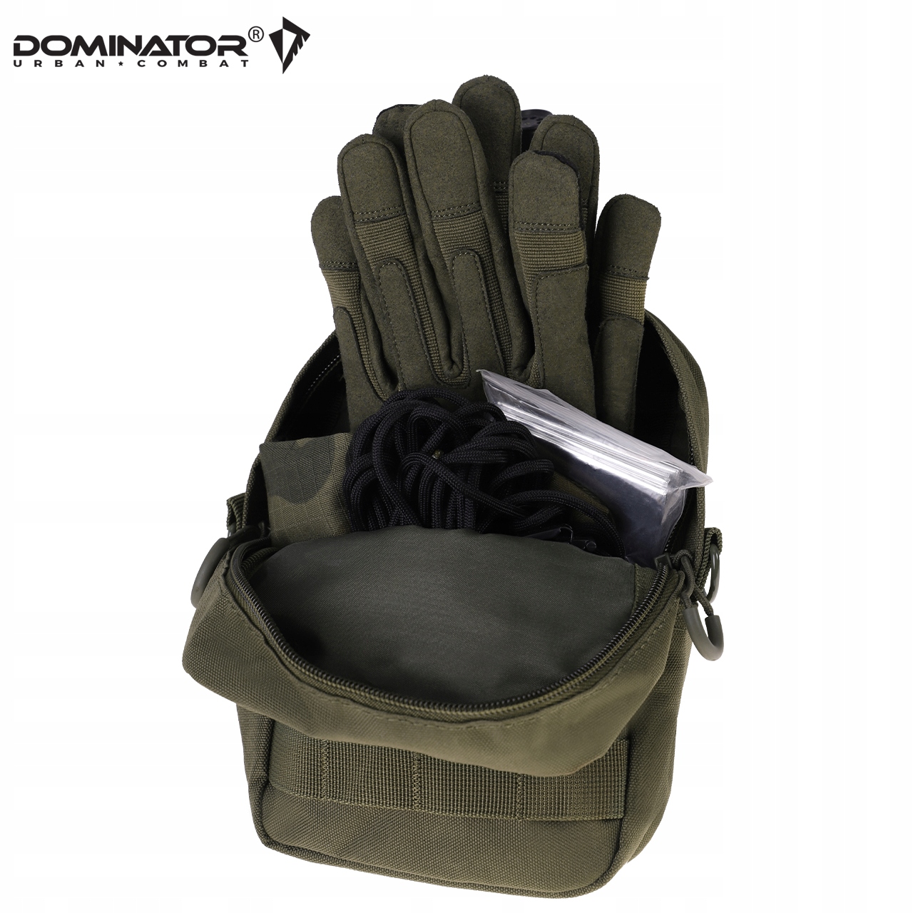 Сумка для військових від польської марки Dominator® - це практичний та універсальний елемент обладнання, ідеально підходить для перенесення невеликих аксесуарів. Оснащений системою Molle, ви можете легко встановити його на пояс, рюкзак або інше обладнання. Виготовлений з міцних матеріалів, забезпечує кращу довговічність та надійність у різних умовах. Компактні розміри та функціональні кишені полегшують вам організацію необхідного обладнання.